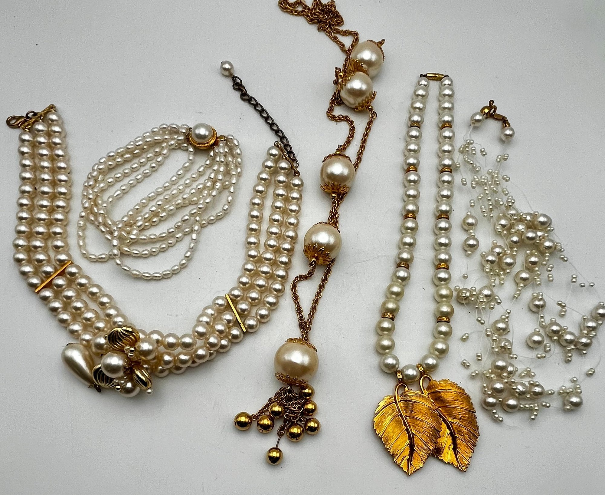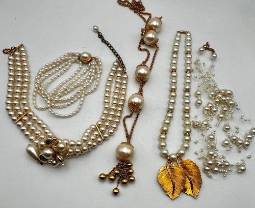 Pearl Gold Tone Mix Necklaces & Bracelet