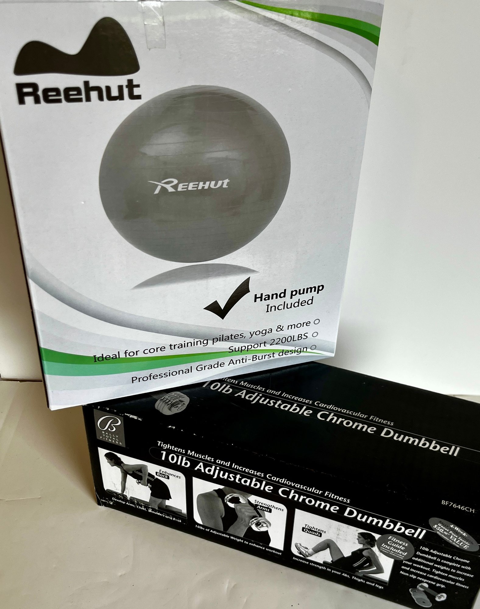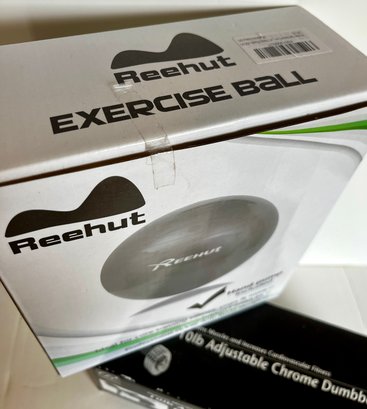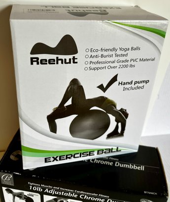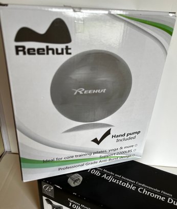 NEW Bally Total Fitness Chrome Dumbell & Reehut Exercise Ball -purple