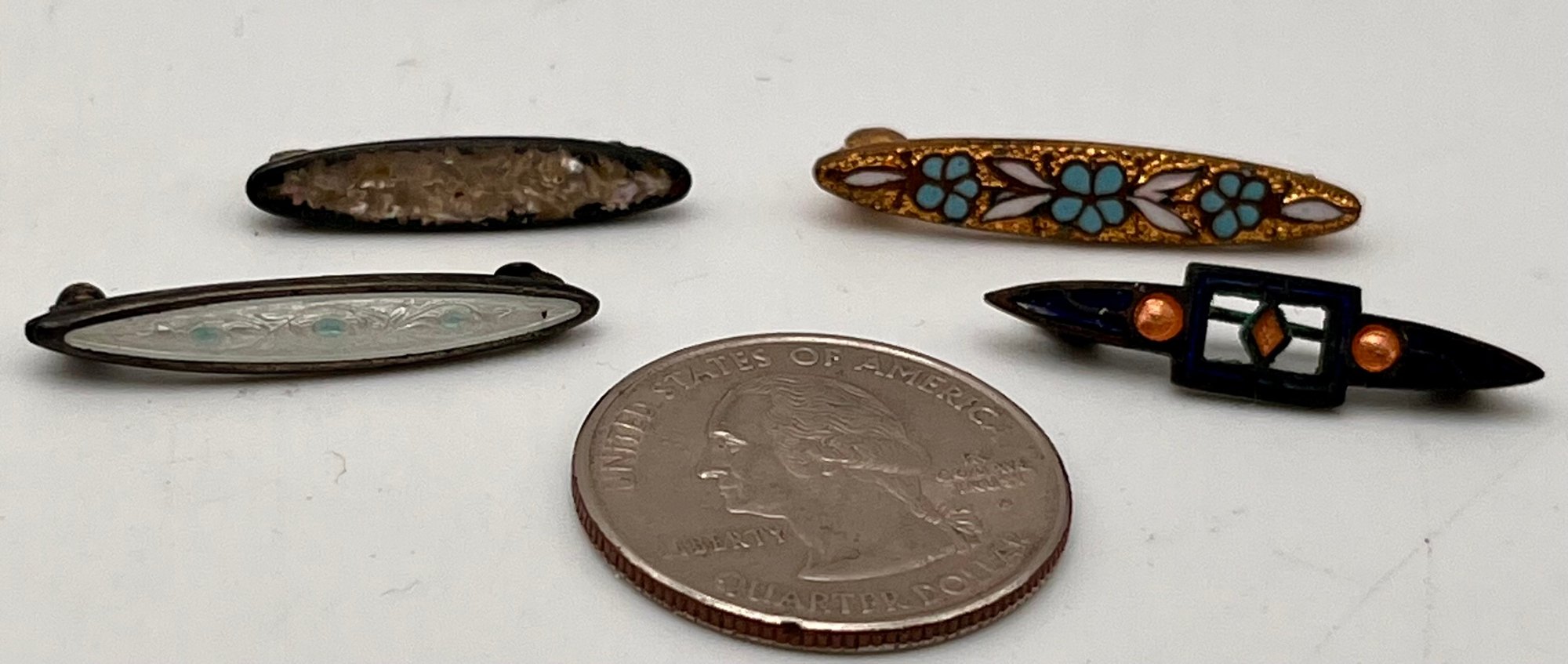 Four Antique 3 Enamel & 1 mop Shell Collar Pins