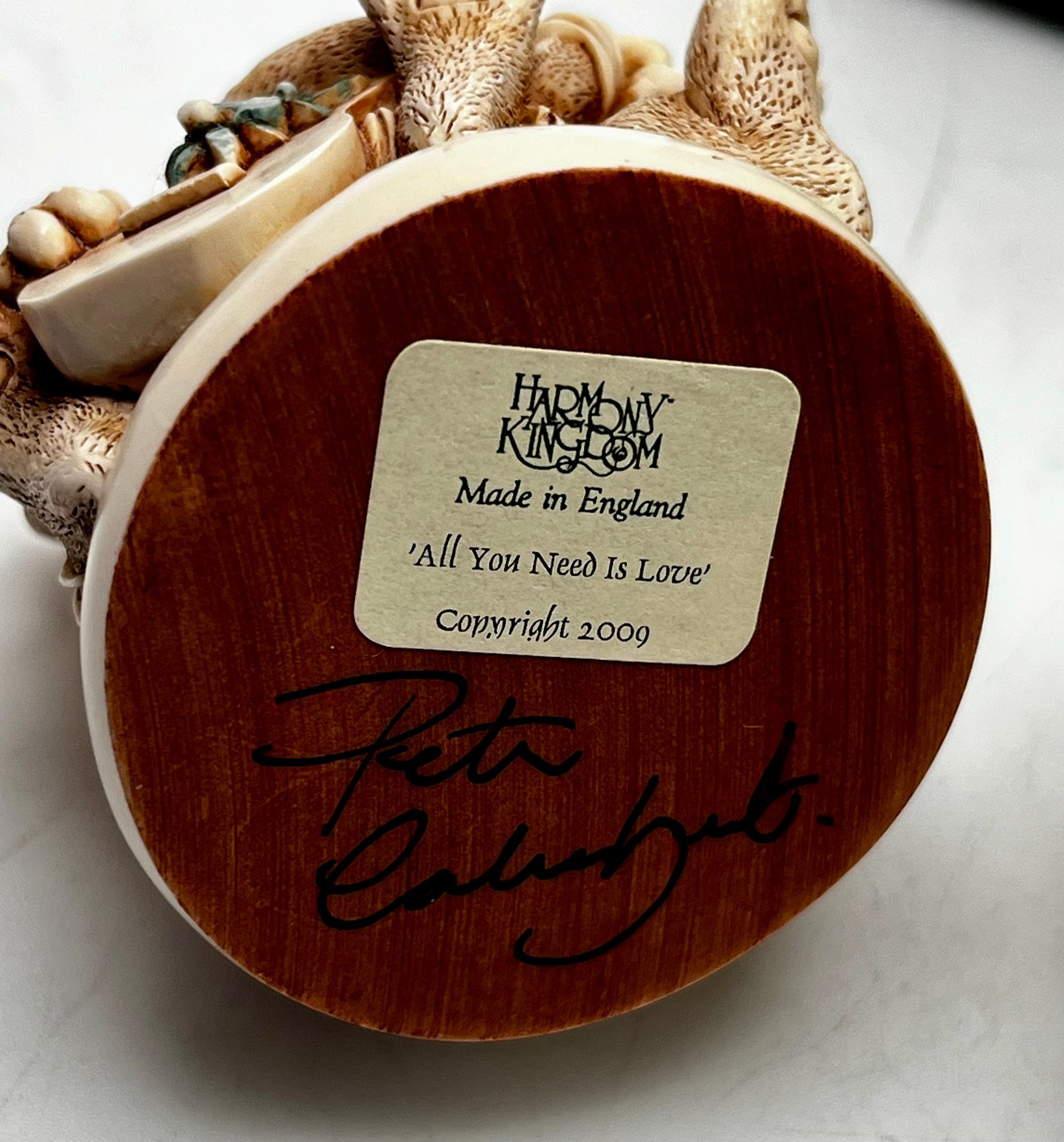 Signed by Peter Calvesbert artist carver. Harmony kingdom “all you need is love #3” 2009