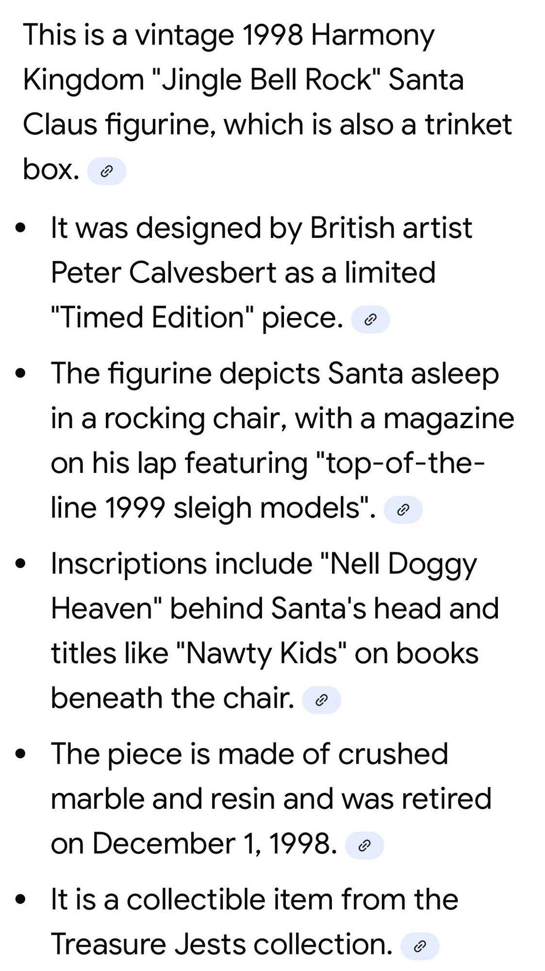 Harmony Kingdom -Jingle Bell Rock - Santa In rocking chair Original box figure 1998