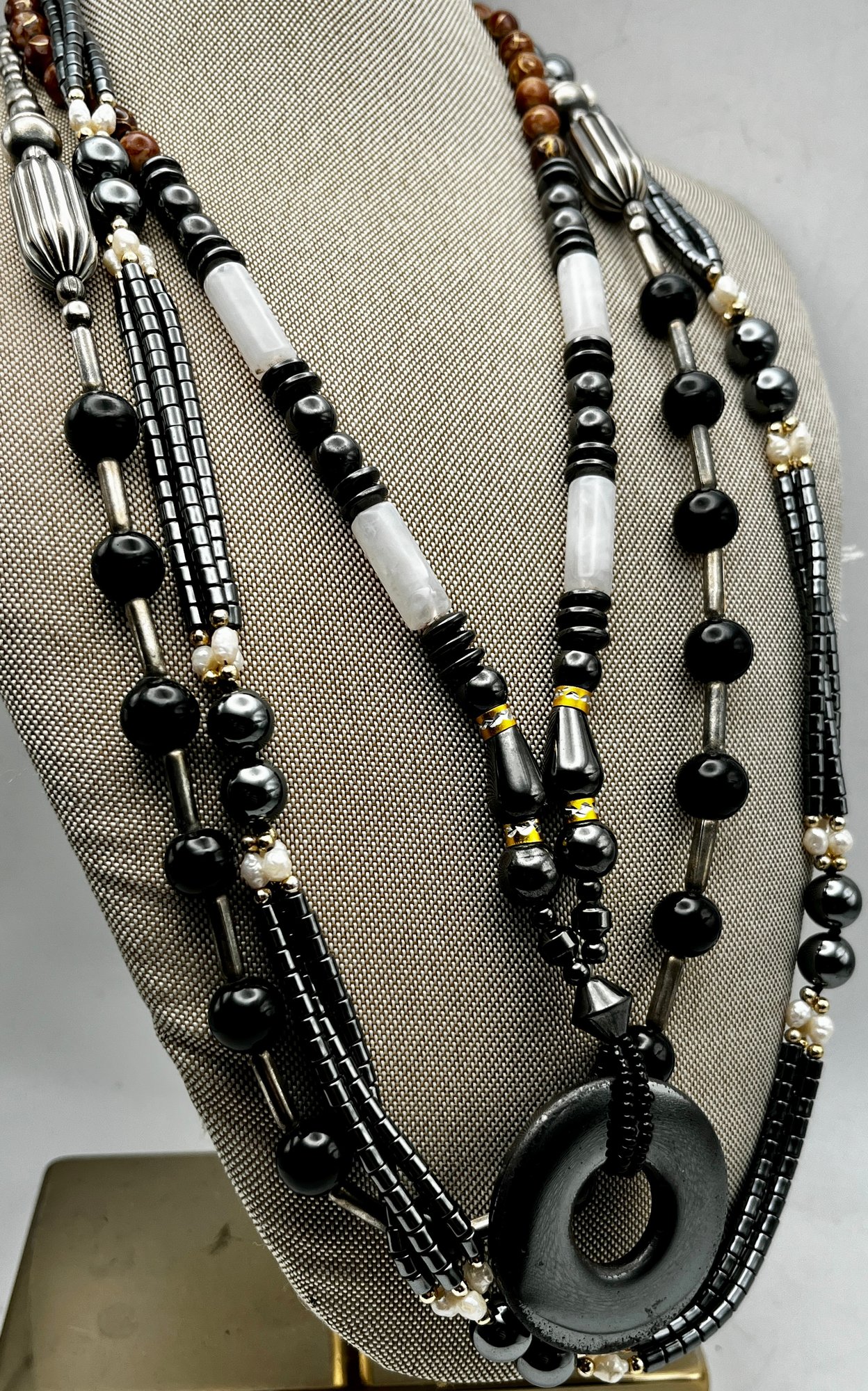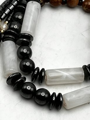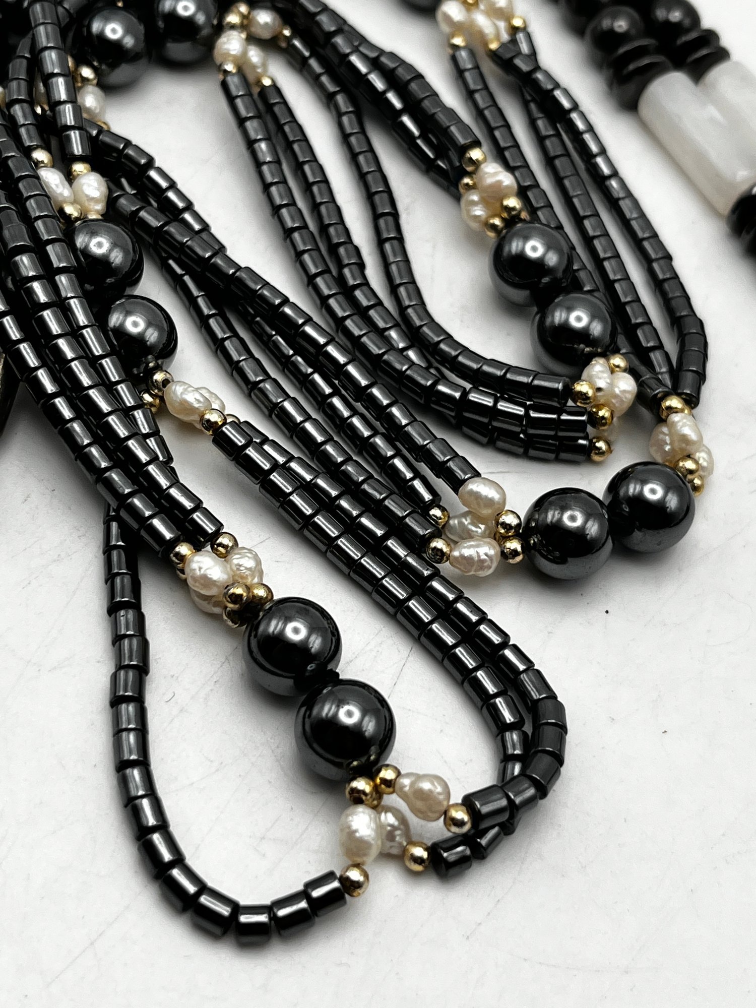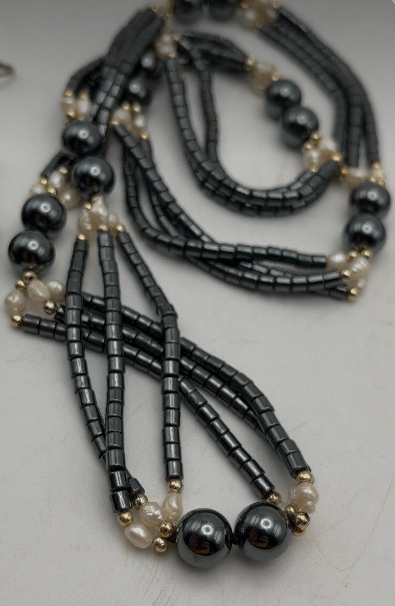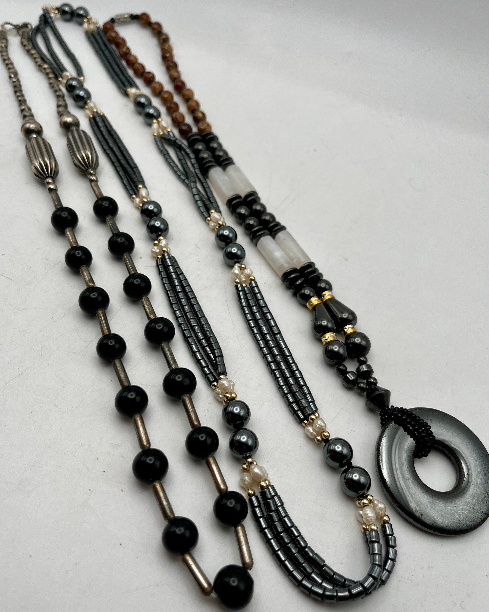 Hematite. Onyx, Fresh Pearl - Necklaces Lot