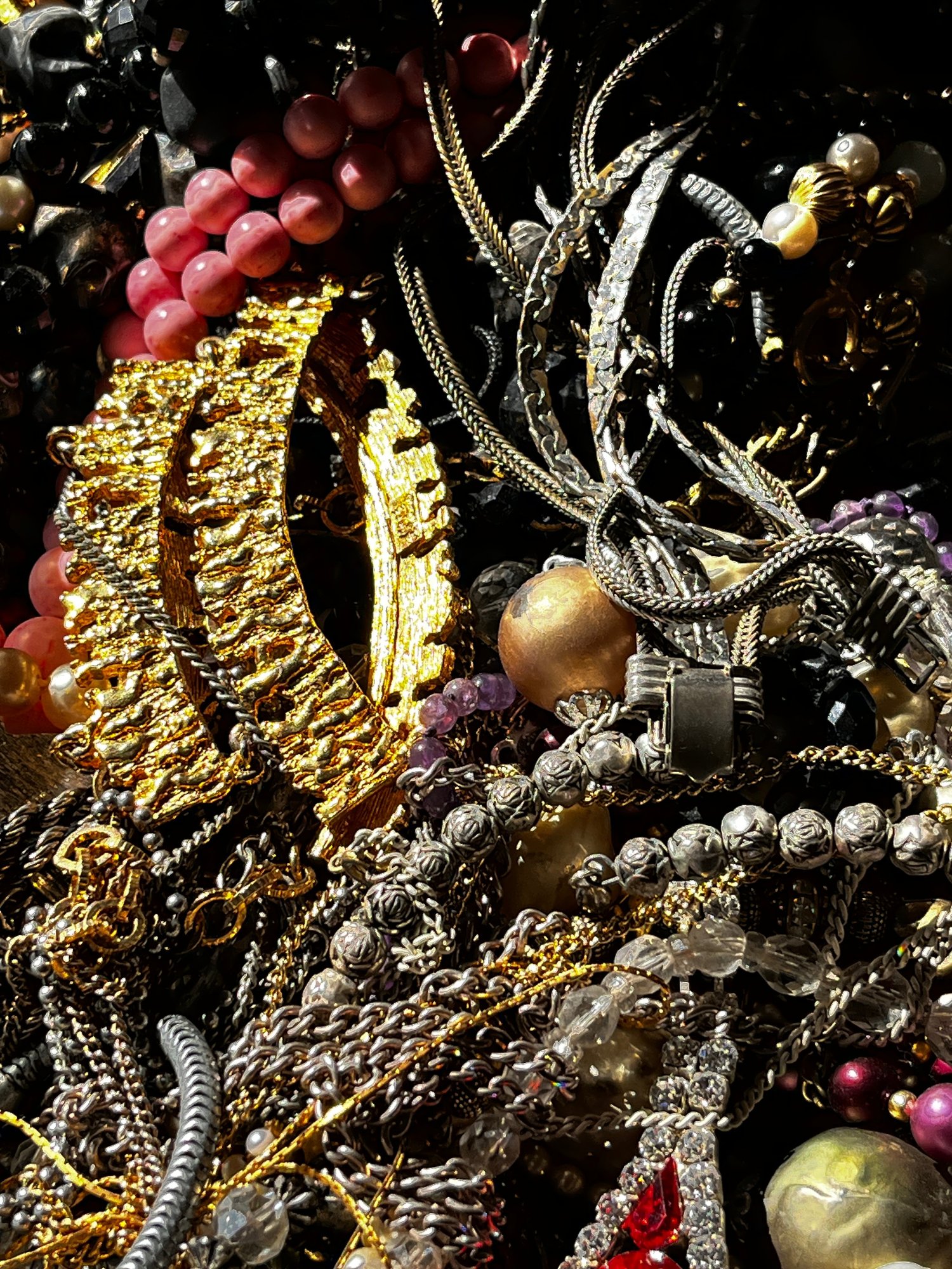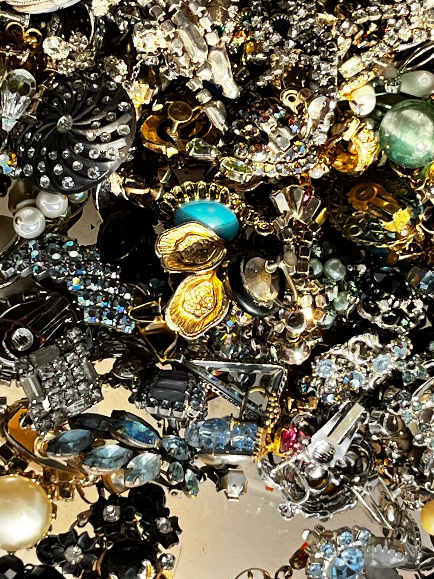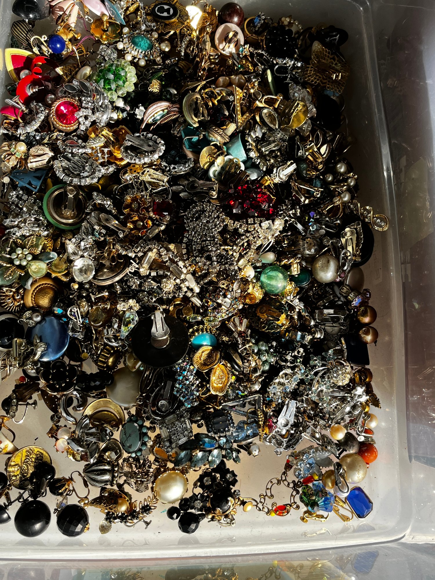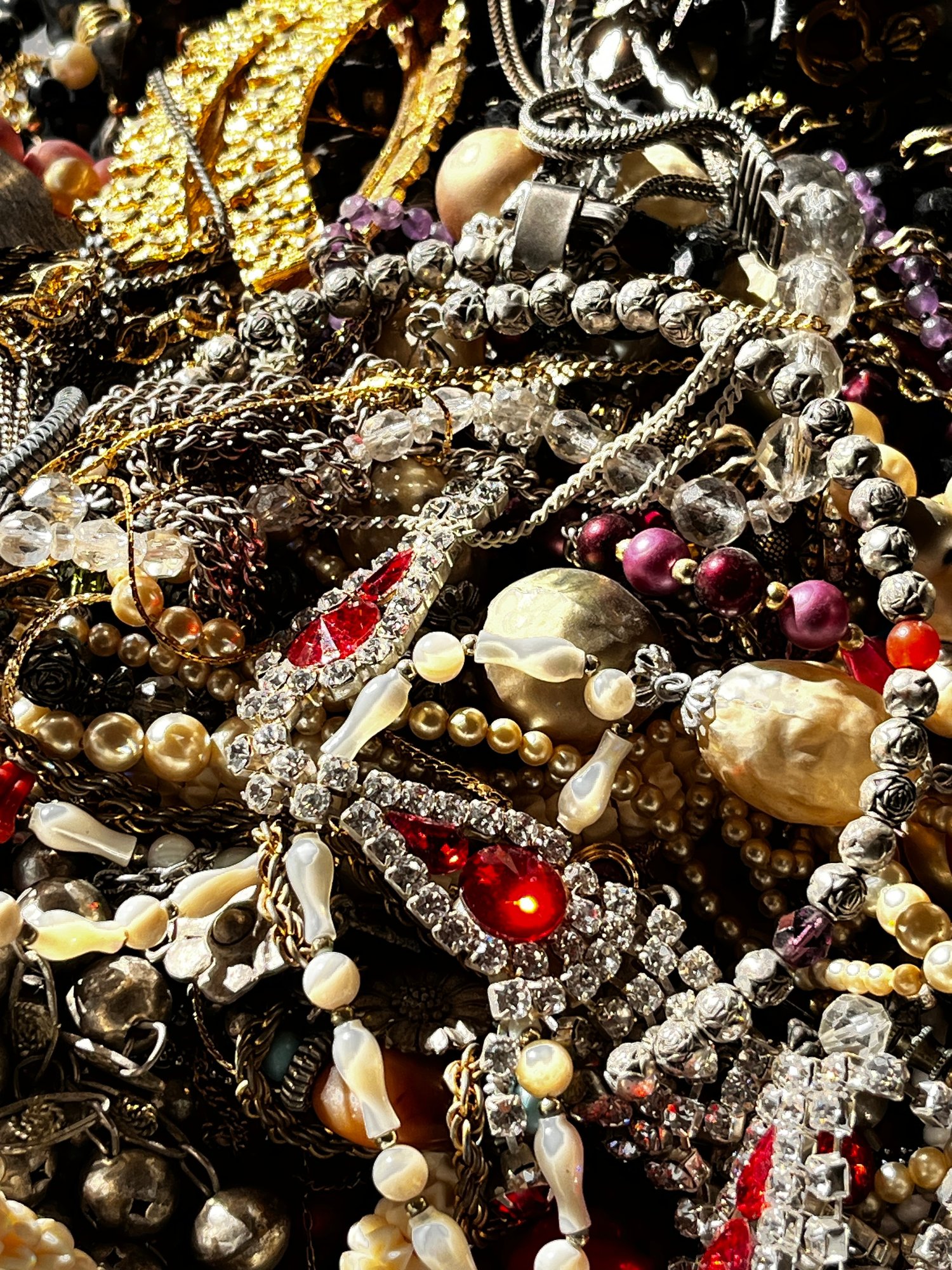 There is a mix of vintage with lots of wearable pieces. Many tangles necklaces, earrings and more in a 15qt tote.