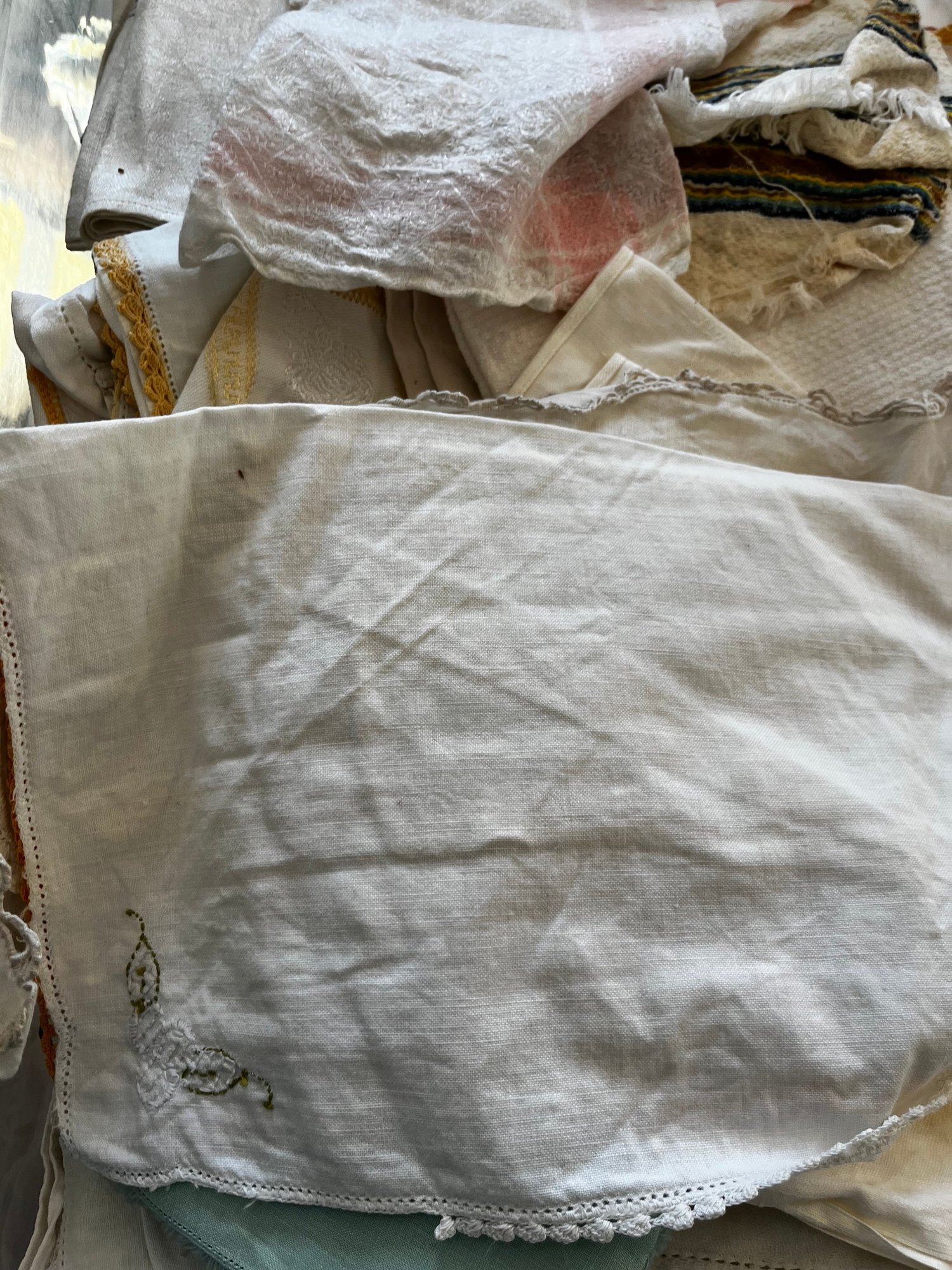 Huge Vintage Napkin Lot And a few other items mixed in tote full