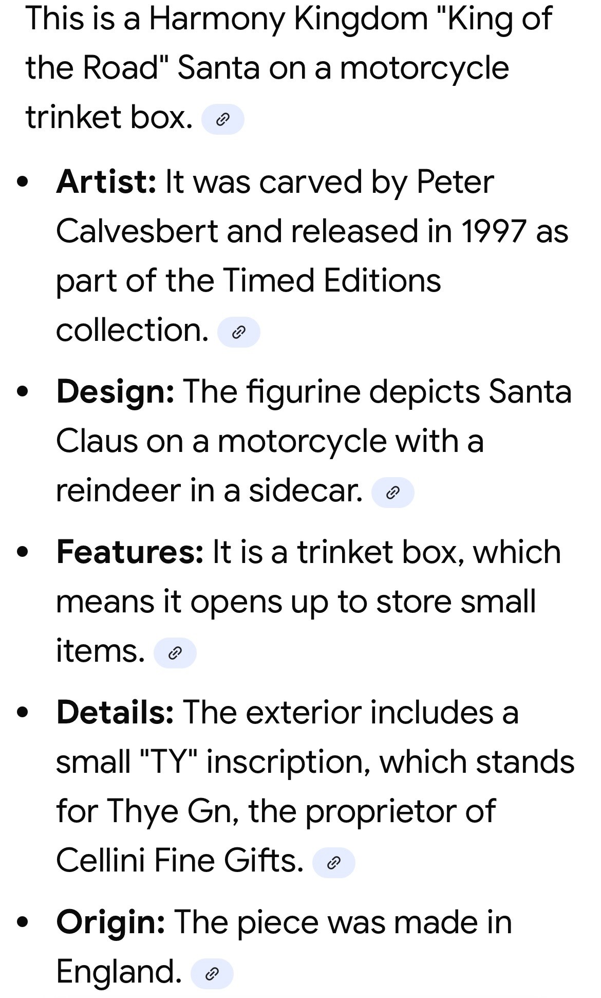 King Of The Road- Santa On Motorcycle Harmony Kingdom Trinket box -1997
