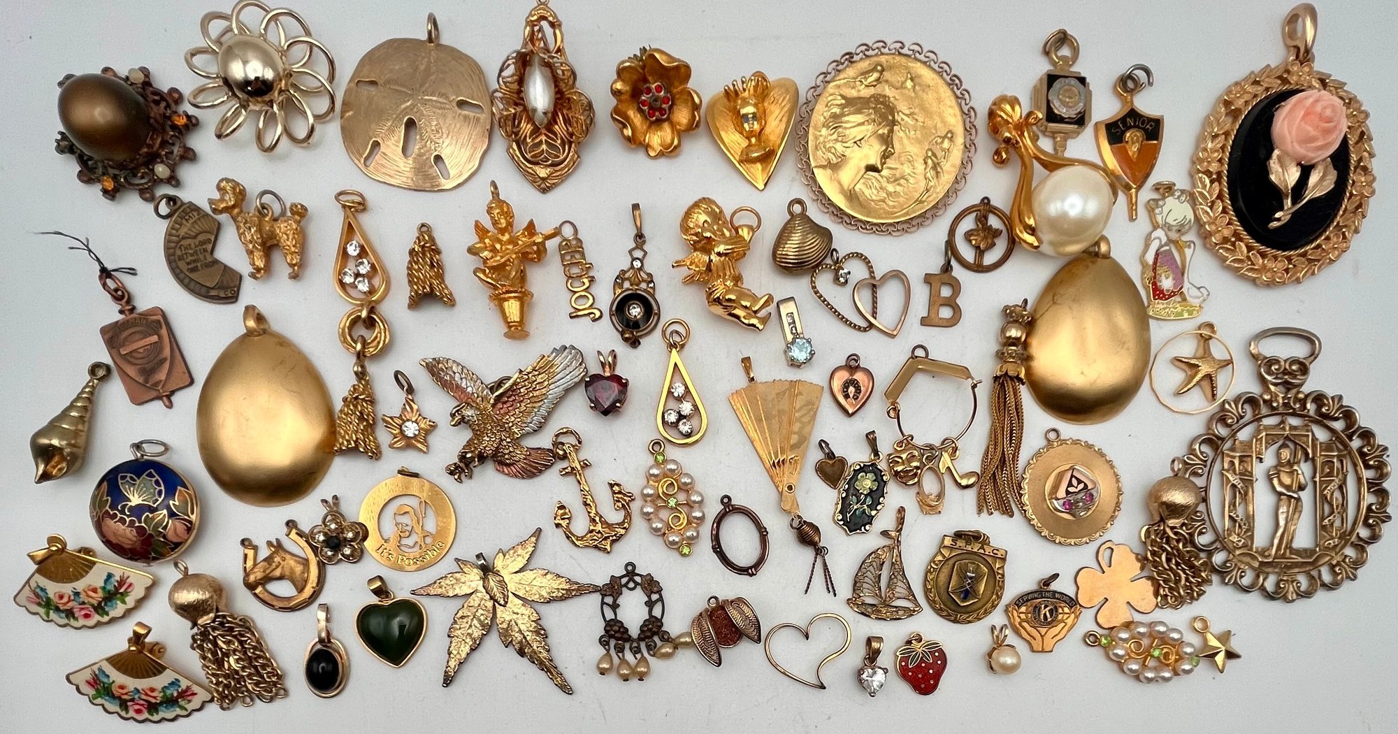 Large Lot Of Gold Tone Pendants 65+ Pendants