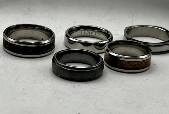 Large Size tungsten & Unmarked Rings Lot Of 5