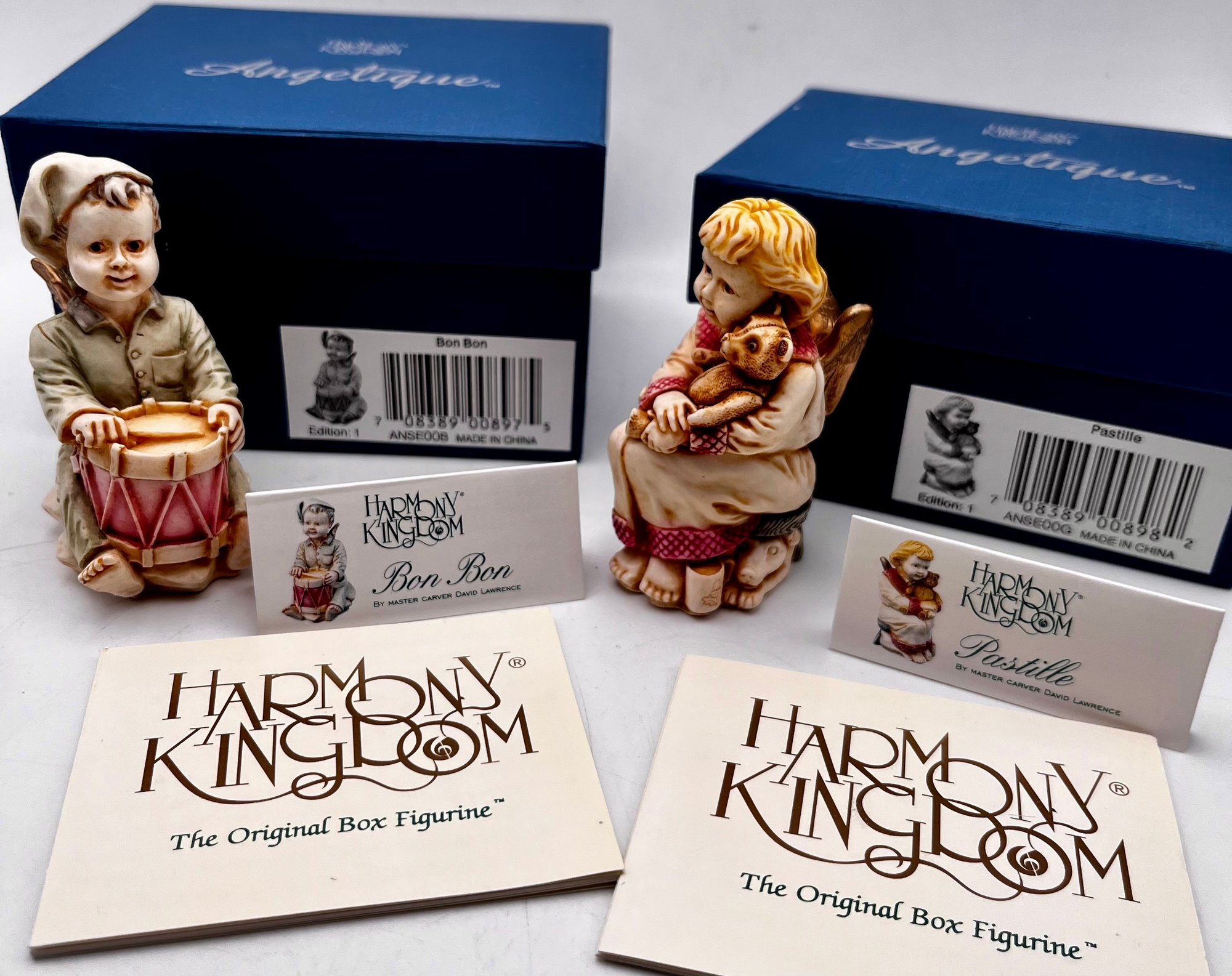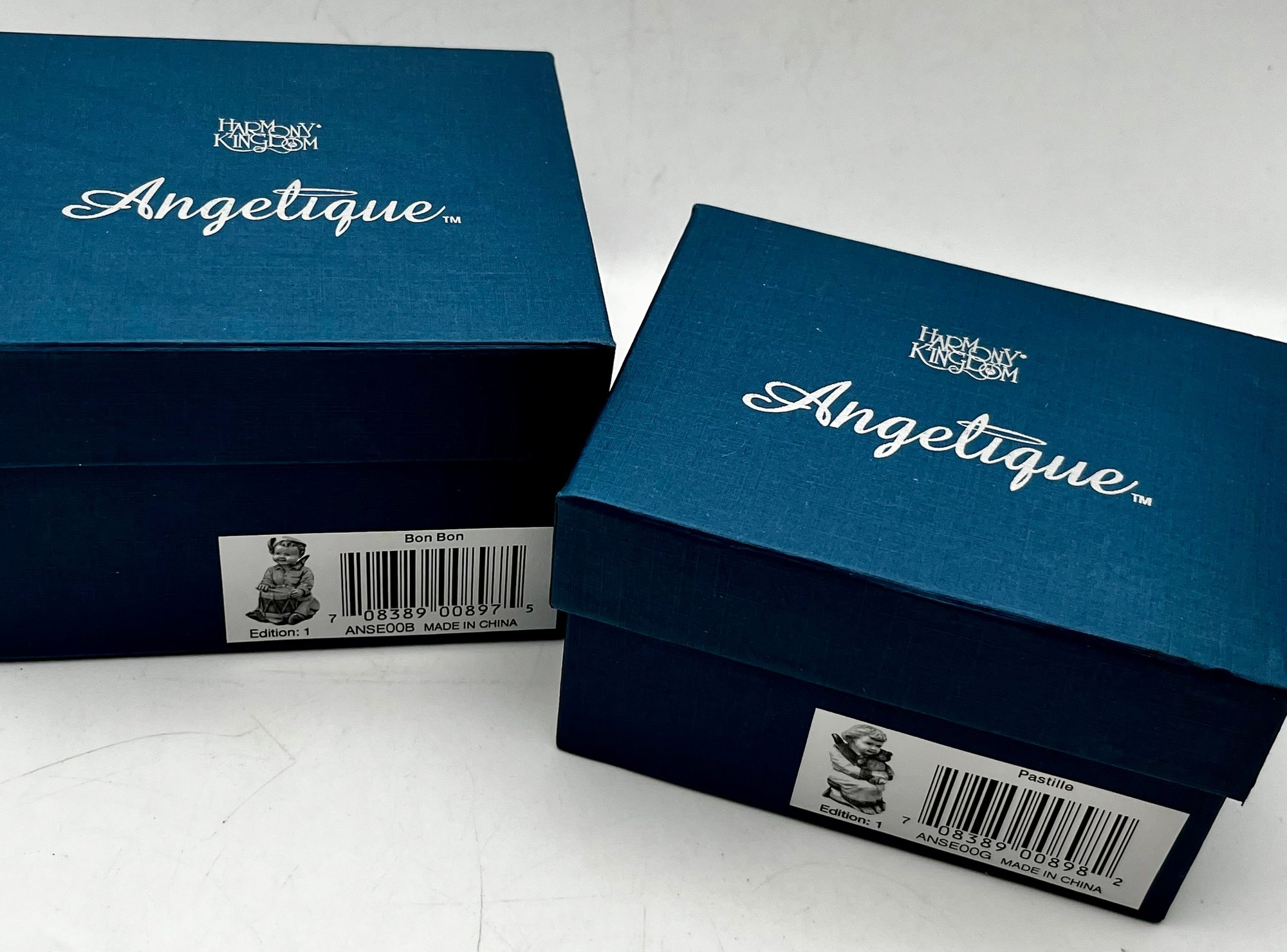 Lot Of 2 Harmony Kingdom Angetique Holiday angels Blue Boxes- Pastille & Bon Bon