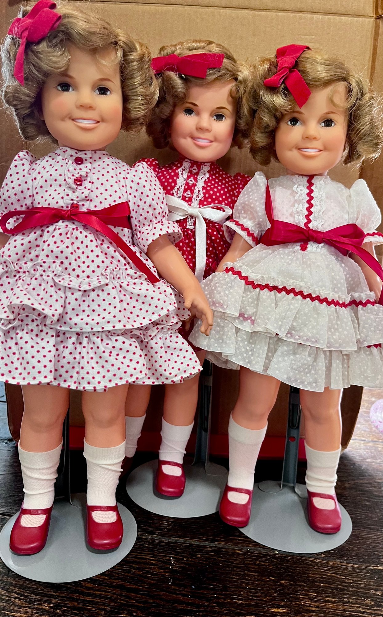 Lot Of 3 Ideal 1972 Shirley Temple Dolls All with dress and stand two coats and matching hats