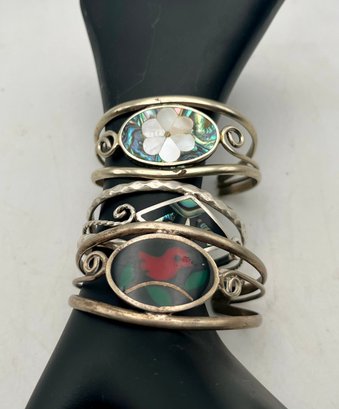 Lot Of 3 Vintage Cuff Bracelets Inlay Design