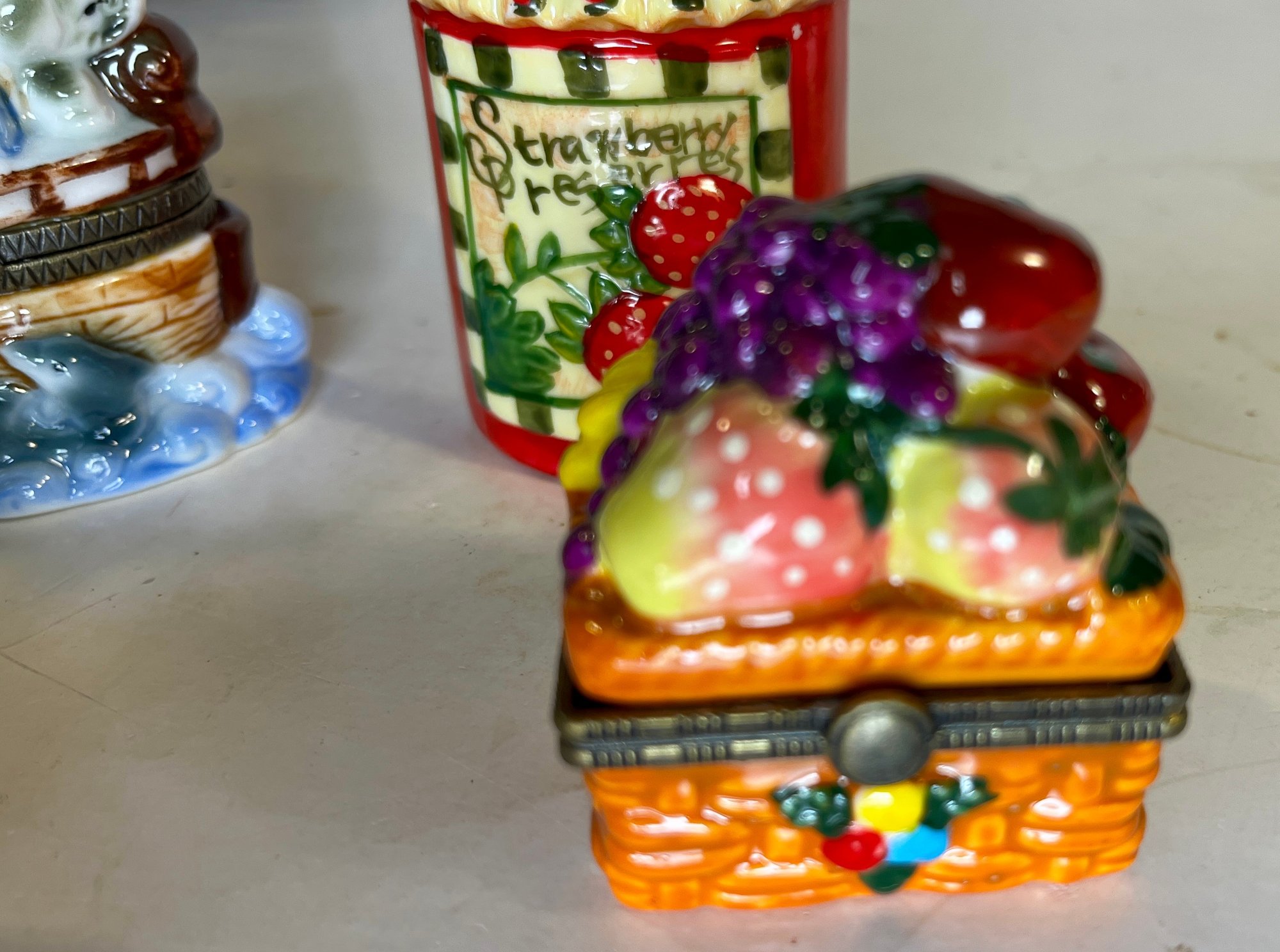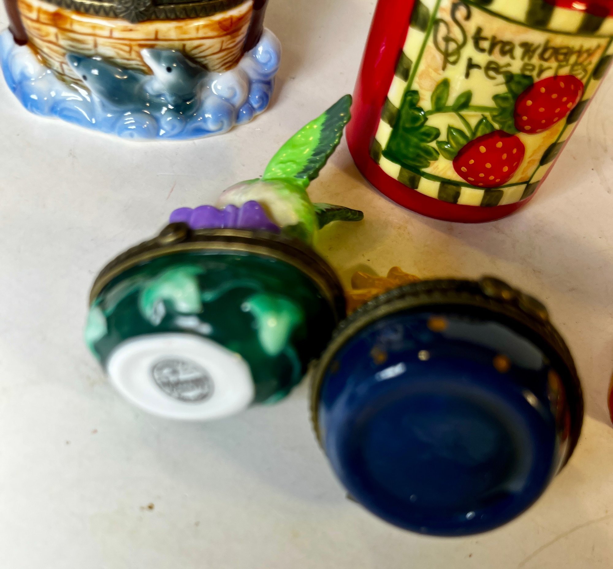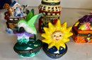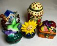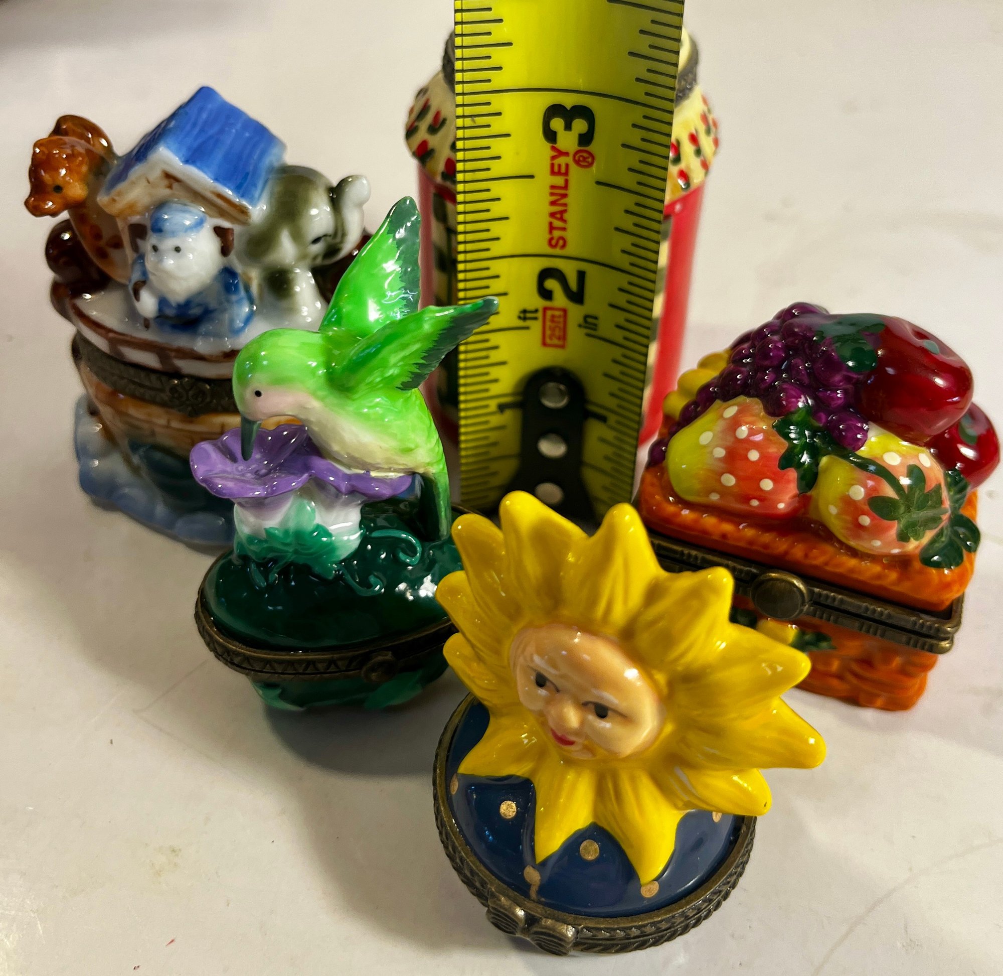 Lot Of 5 Hinged Trinket Boxes- Sun, Noahs Ark, Hummingbird, Fruit Basket