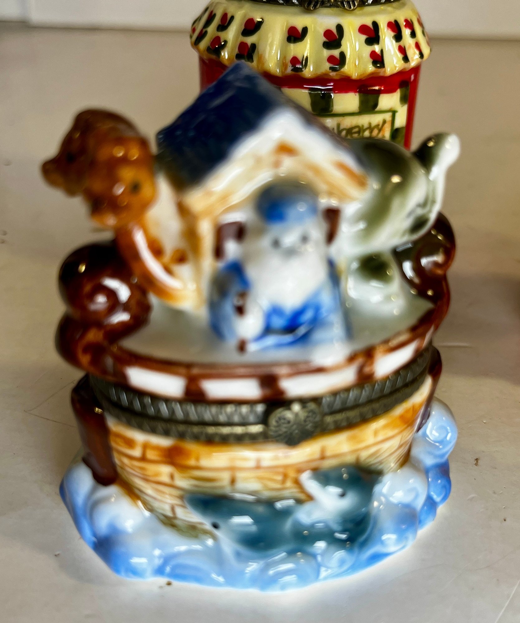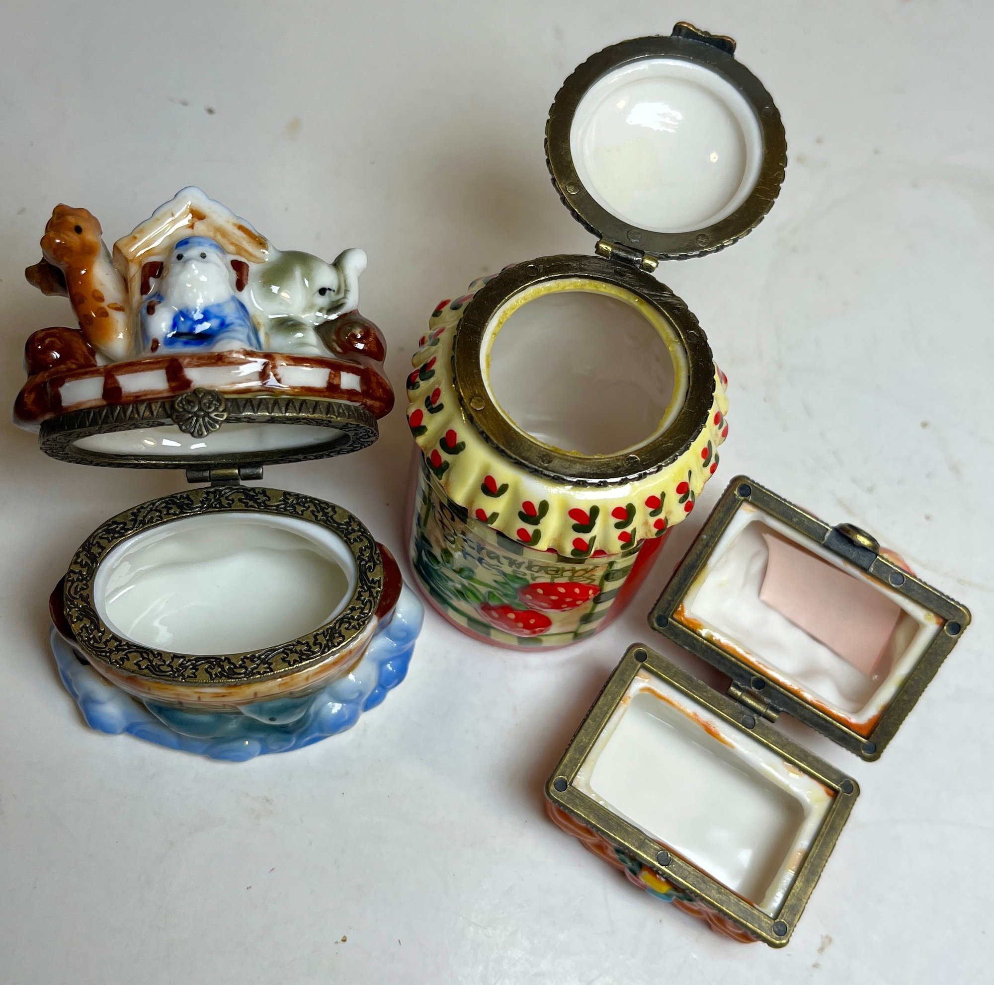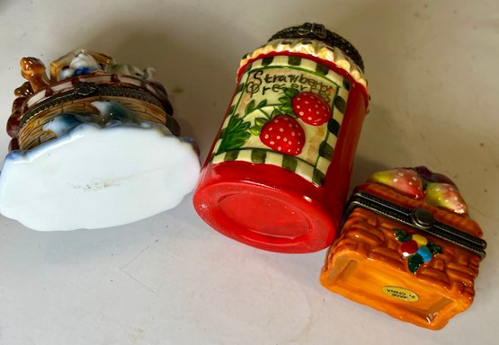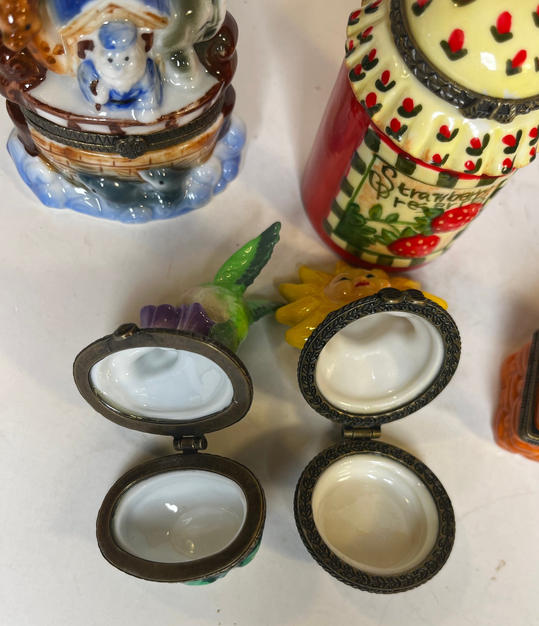 Lot Of 5 Hinged Trinket Boxes- Sun, Noahs Ark, Hummingbird, Fruit Basket
