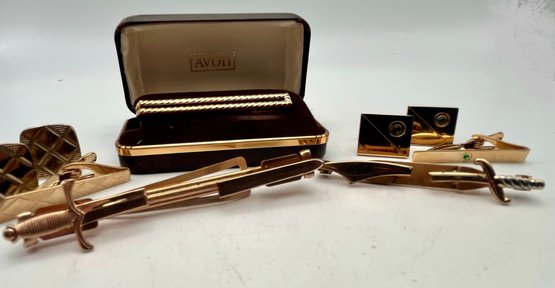 Lot Of Cuff Links & Tie Clip Sets - Sword Clips- Avon Tie Clip