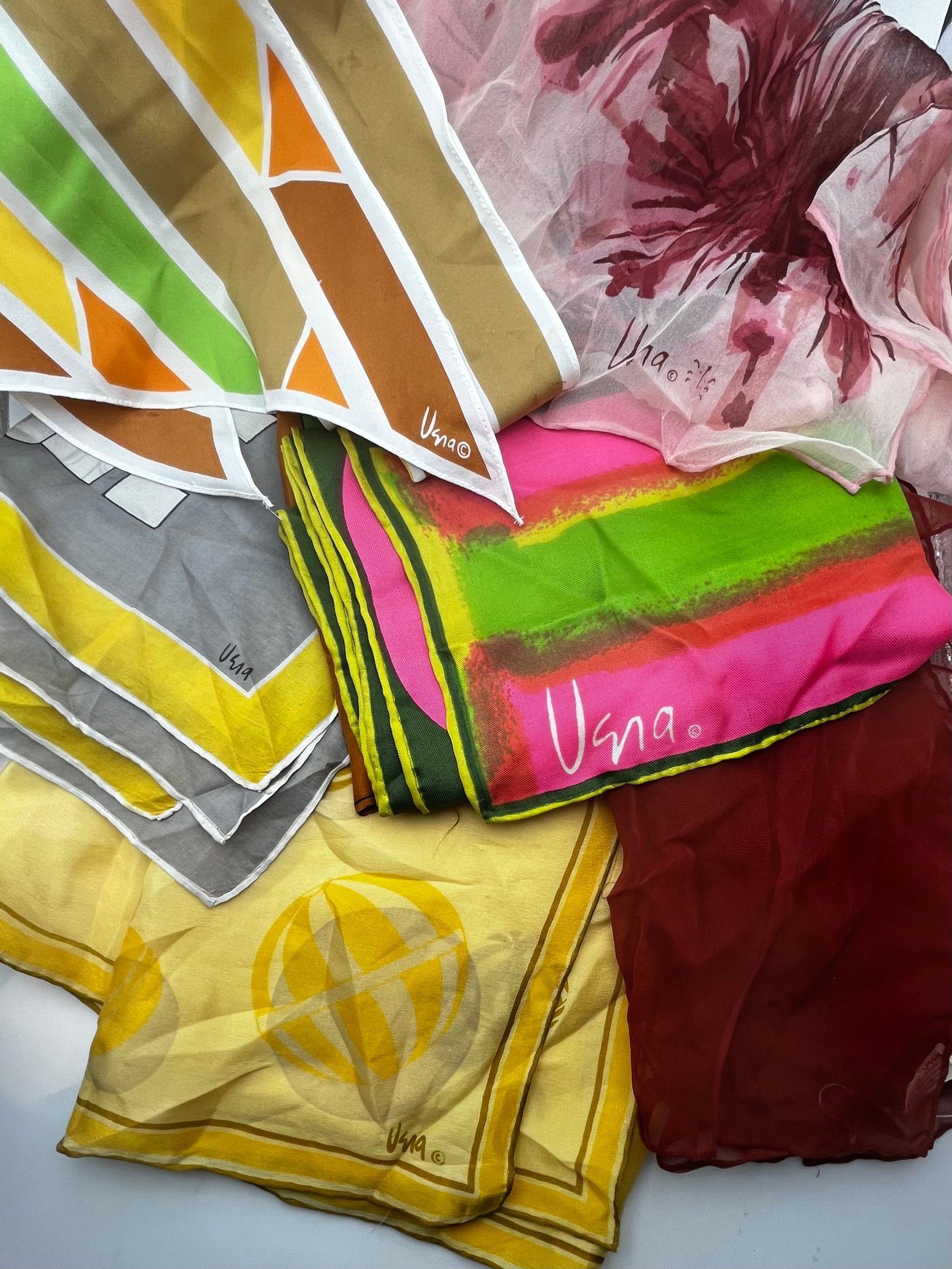 Scarves are vintage and have wear
