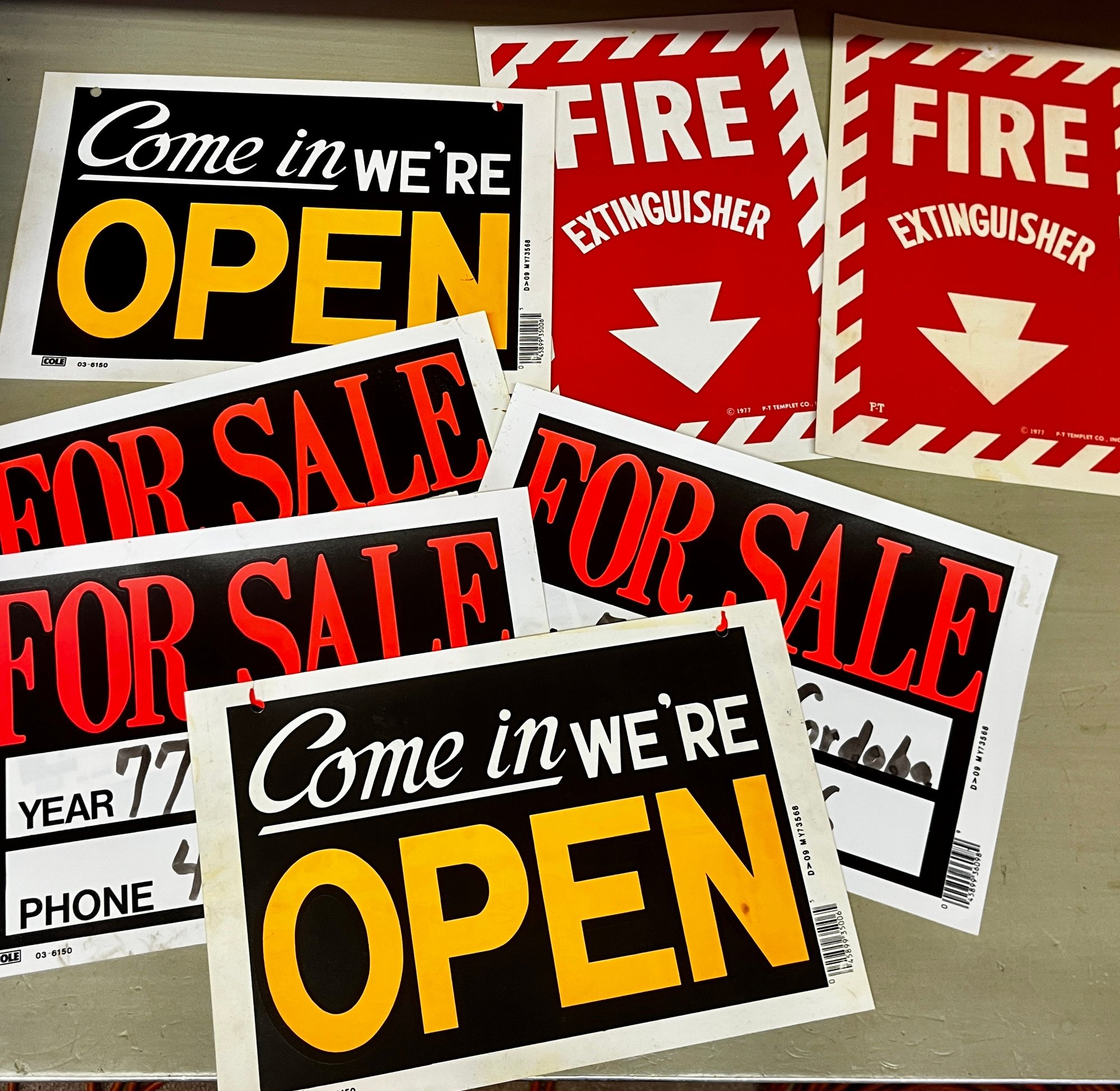Mix - 1977 Fire Extinguisher Signs - Open Signs Other As Shown