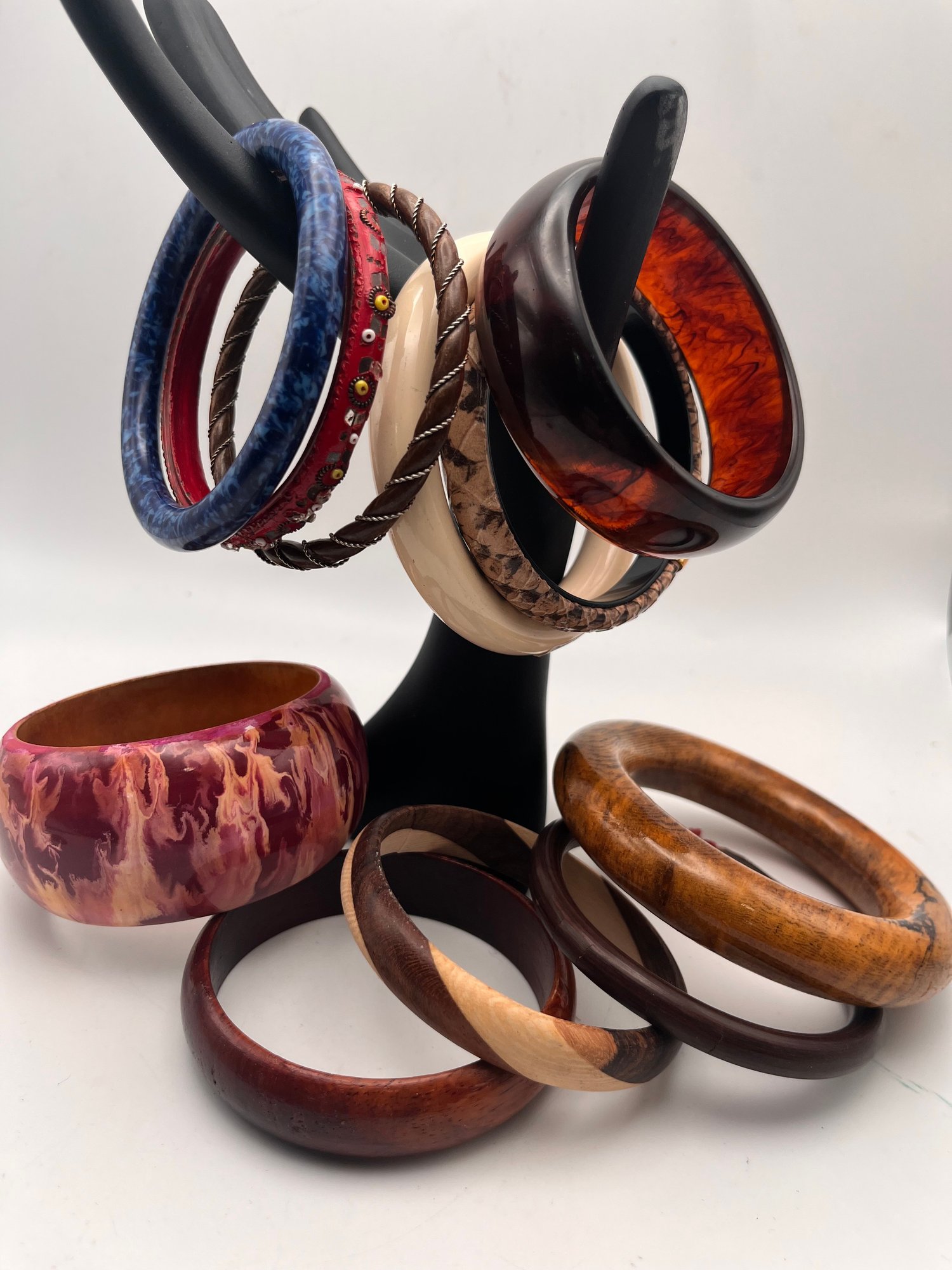 Mixed Bangle Bracelet Lot Wood, Plastic, Leather Lot of 11