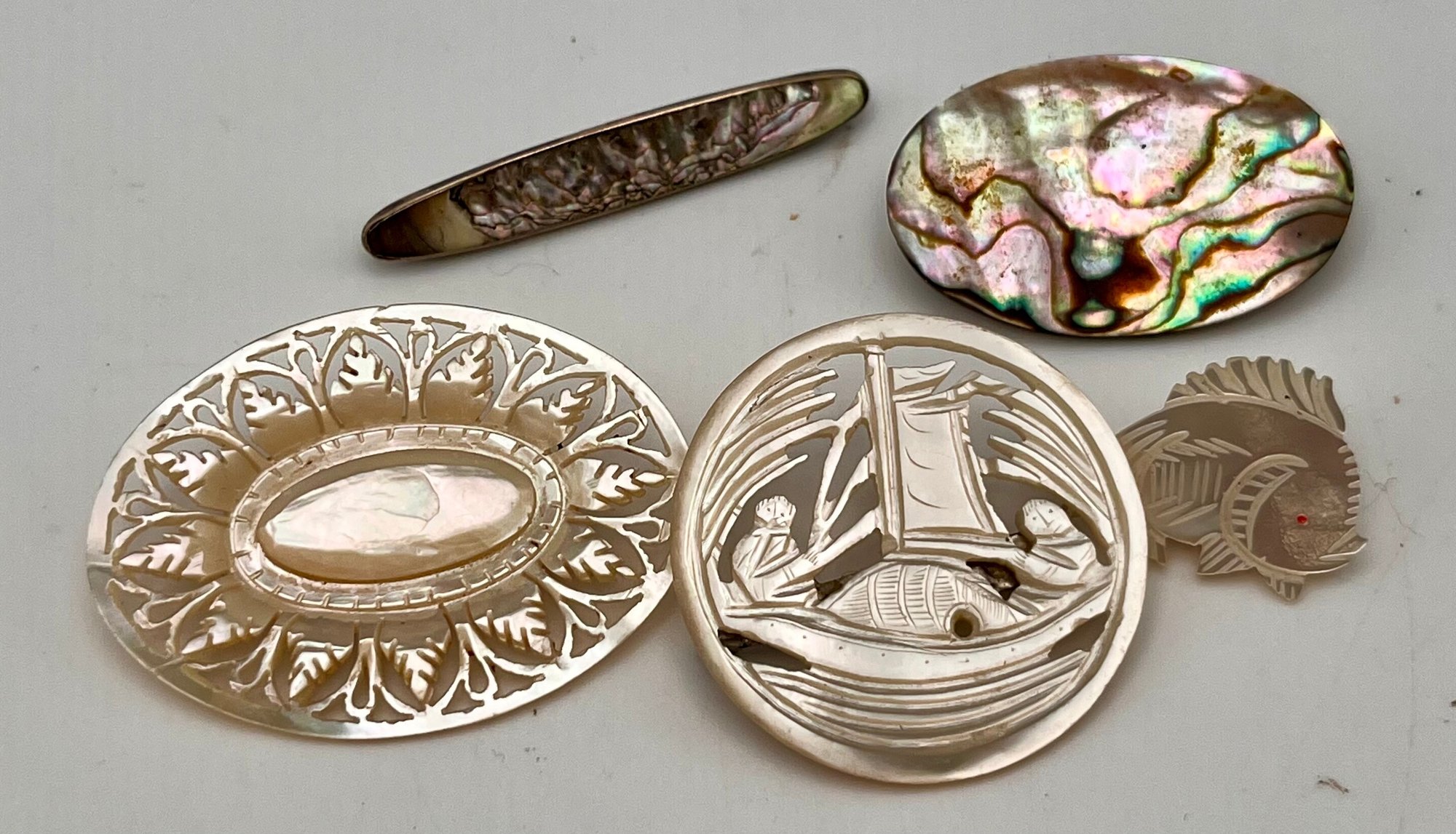 Mop and carved Shell Pins Lot Of 5
