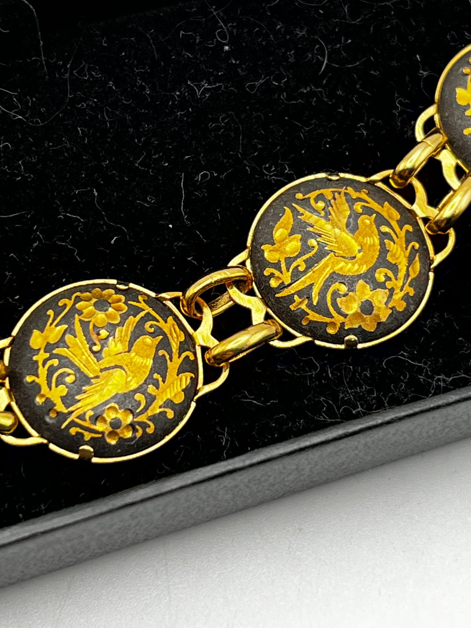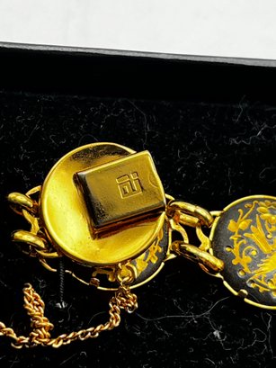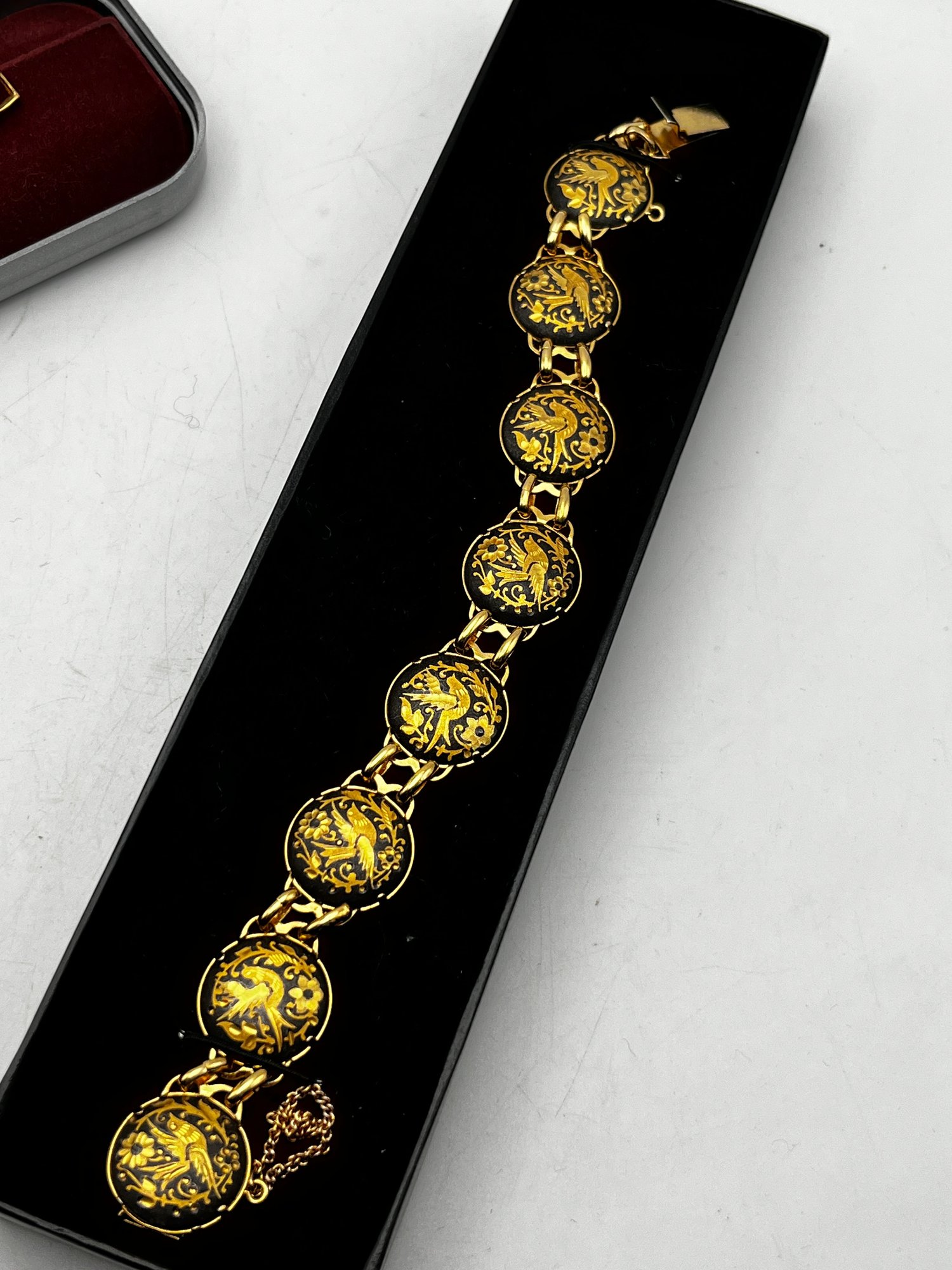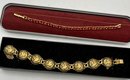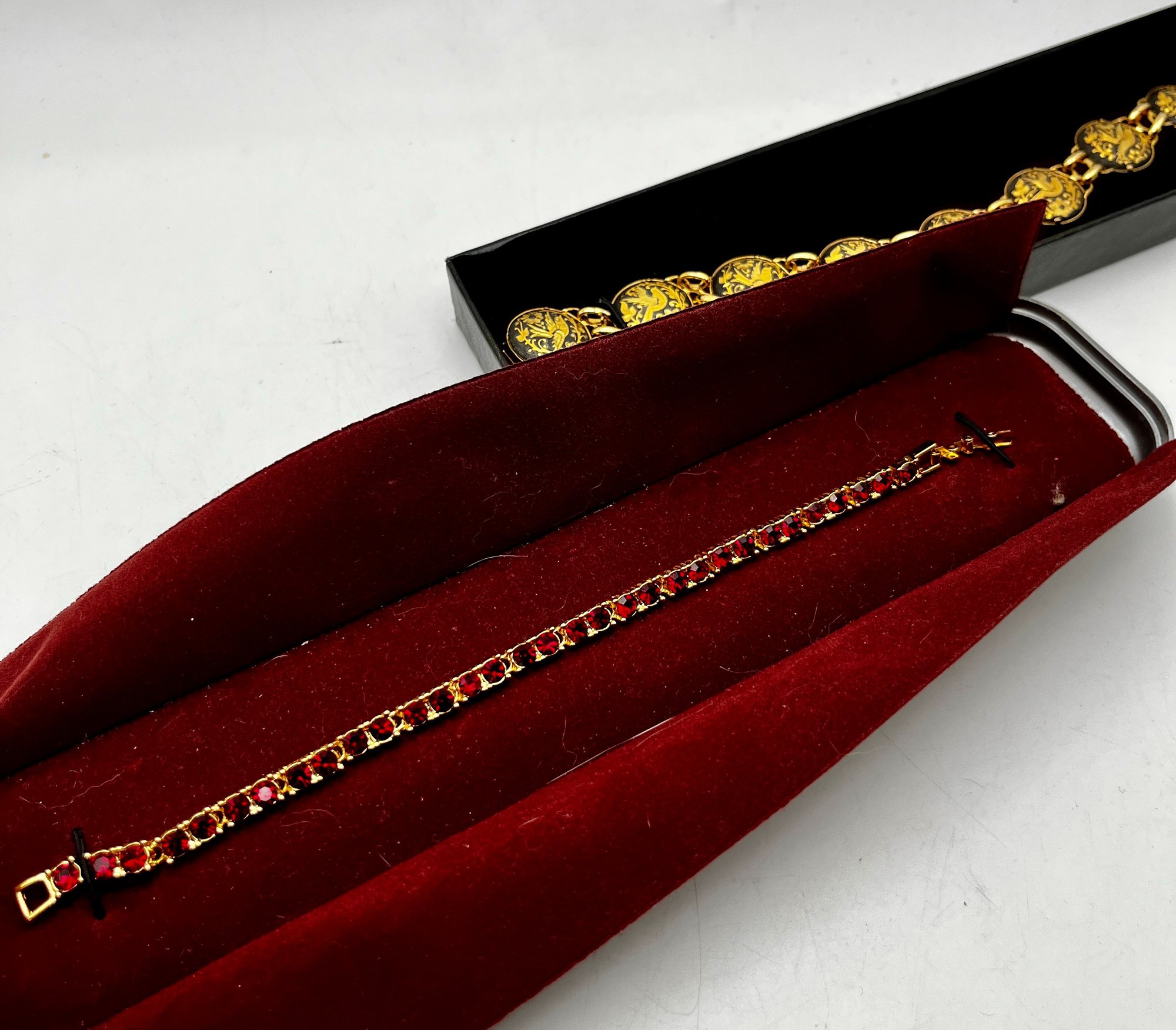 Gold Tone Damascene Link Bird & Flower, Gold Tone Red Stone Bracelets