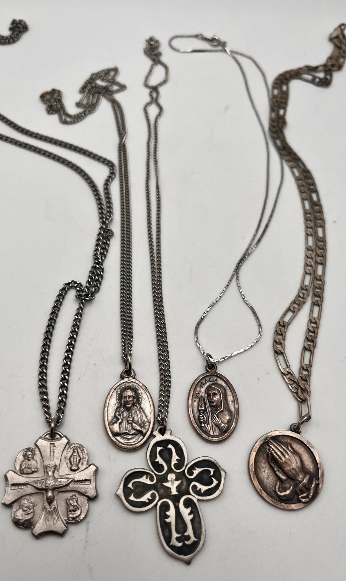 Religious Medal Necklace Lot Of 5