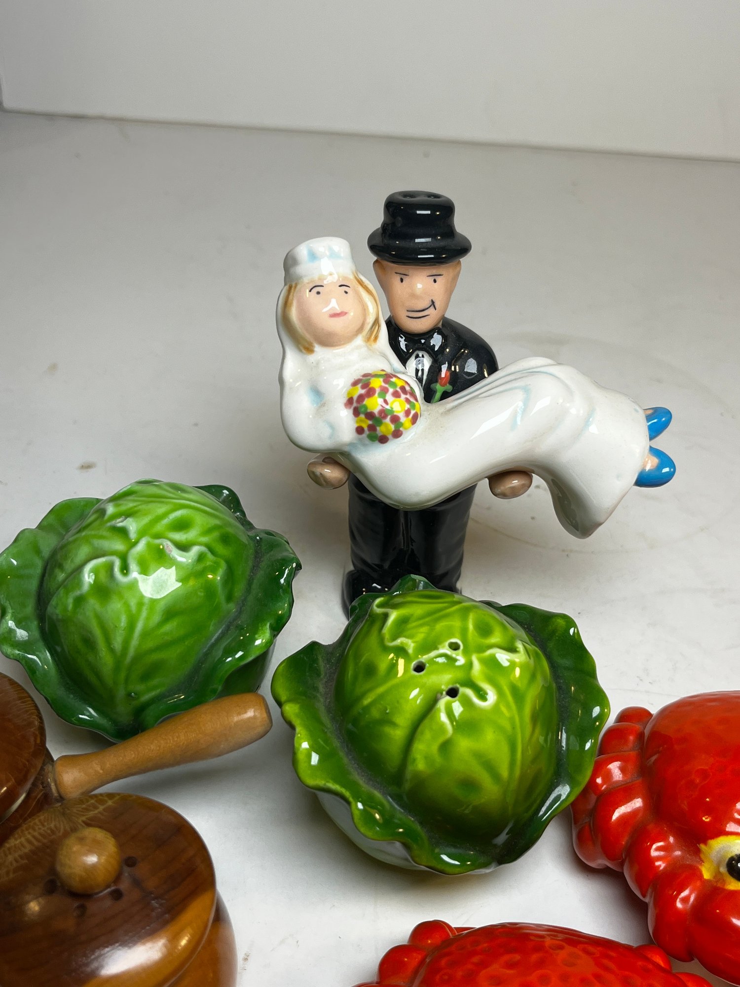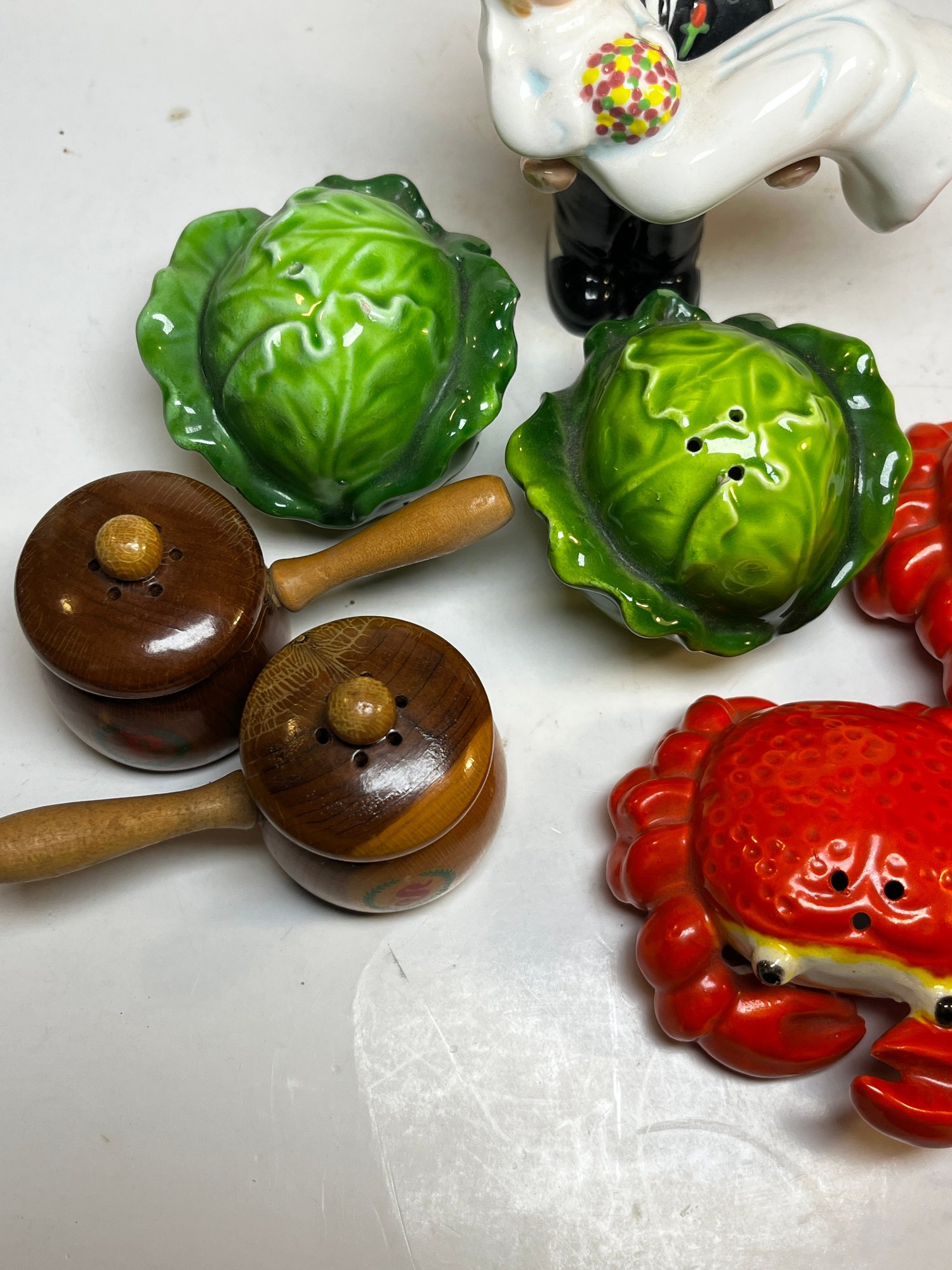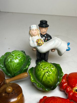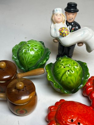 Salt & Pepper Sets -Crabs, Bride & Groom, Lettuce, Wood