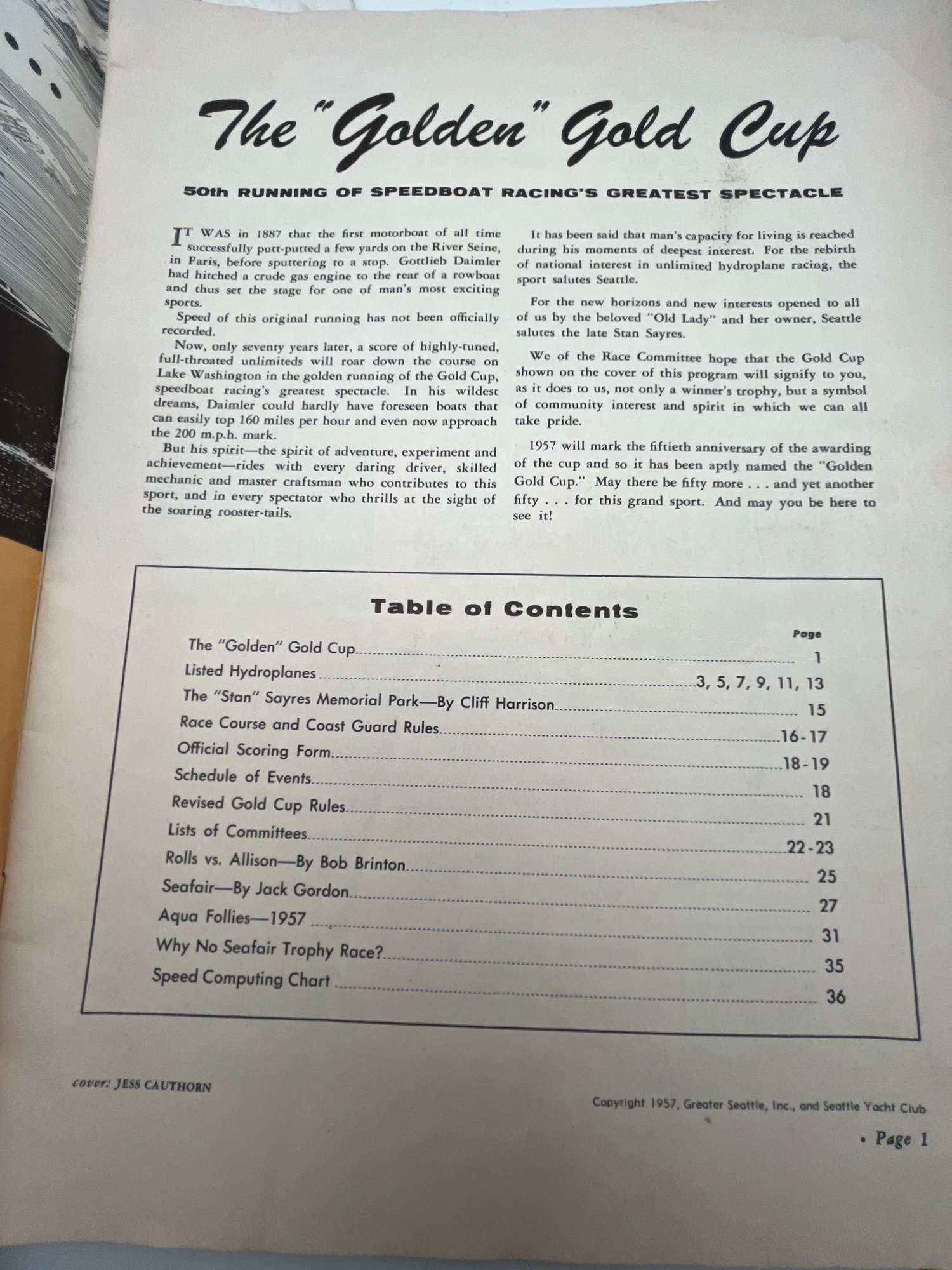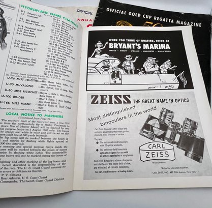 Seattle Gold Cup Regatta Seafair Programs 48th, 50th, 54th & 1965