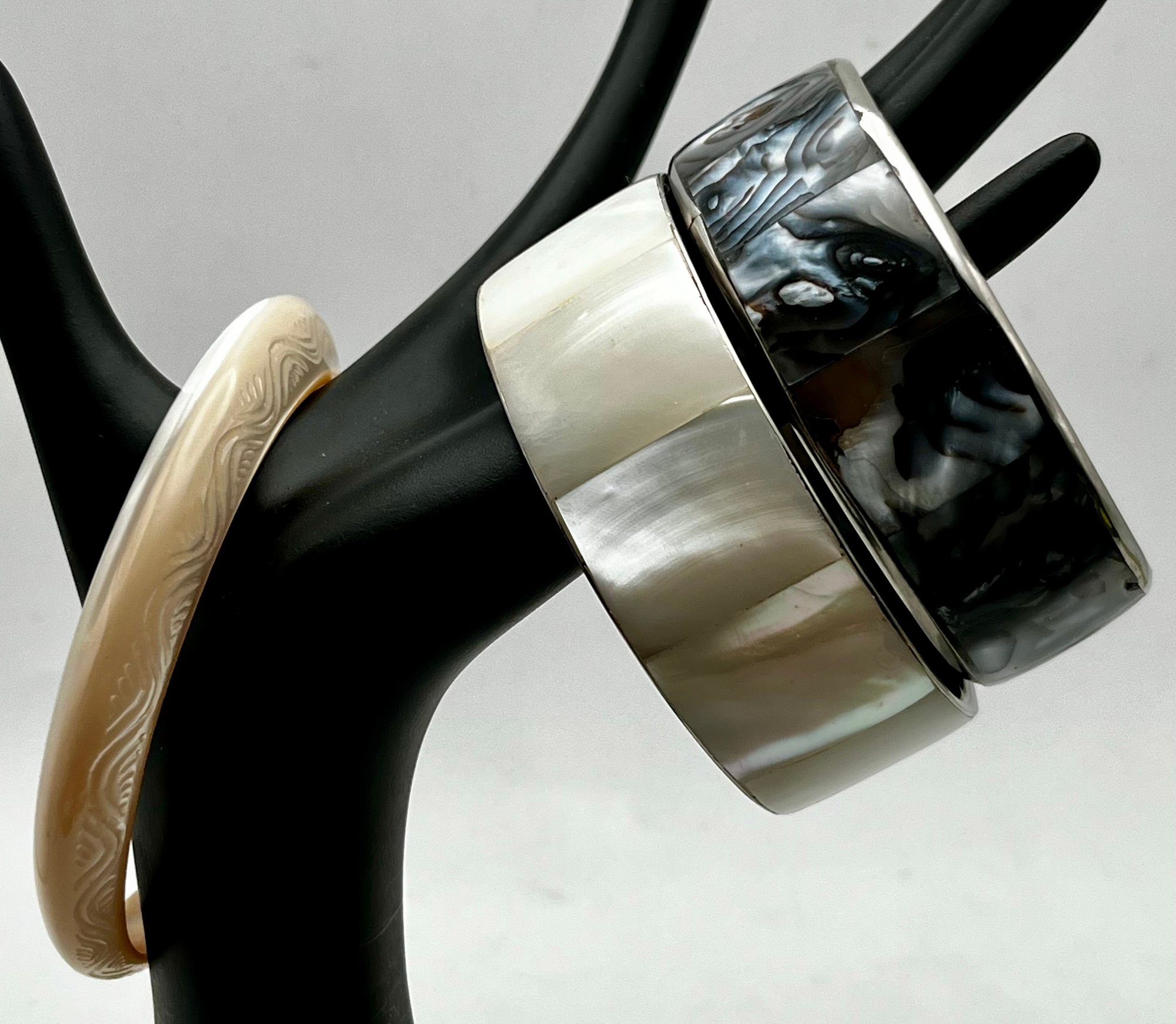 Shell Inlay And Carved Shell Bracelets