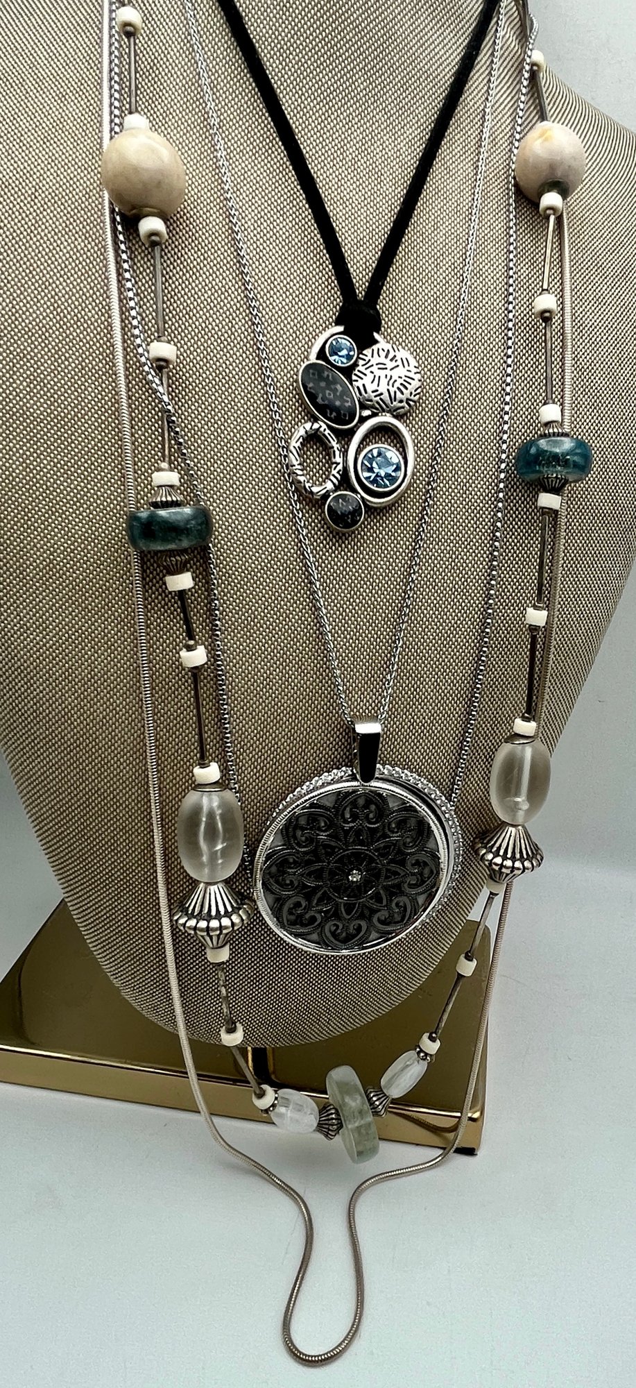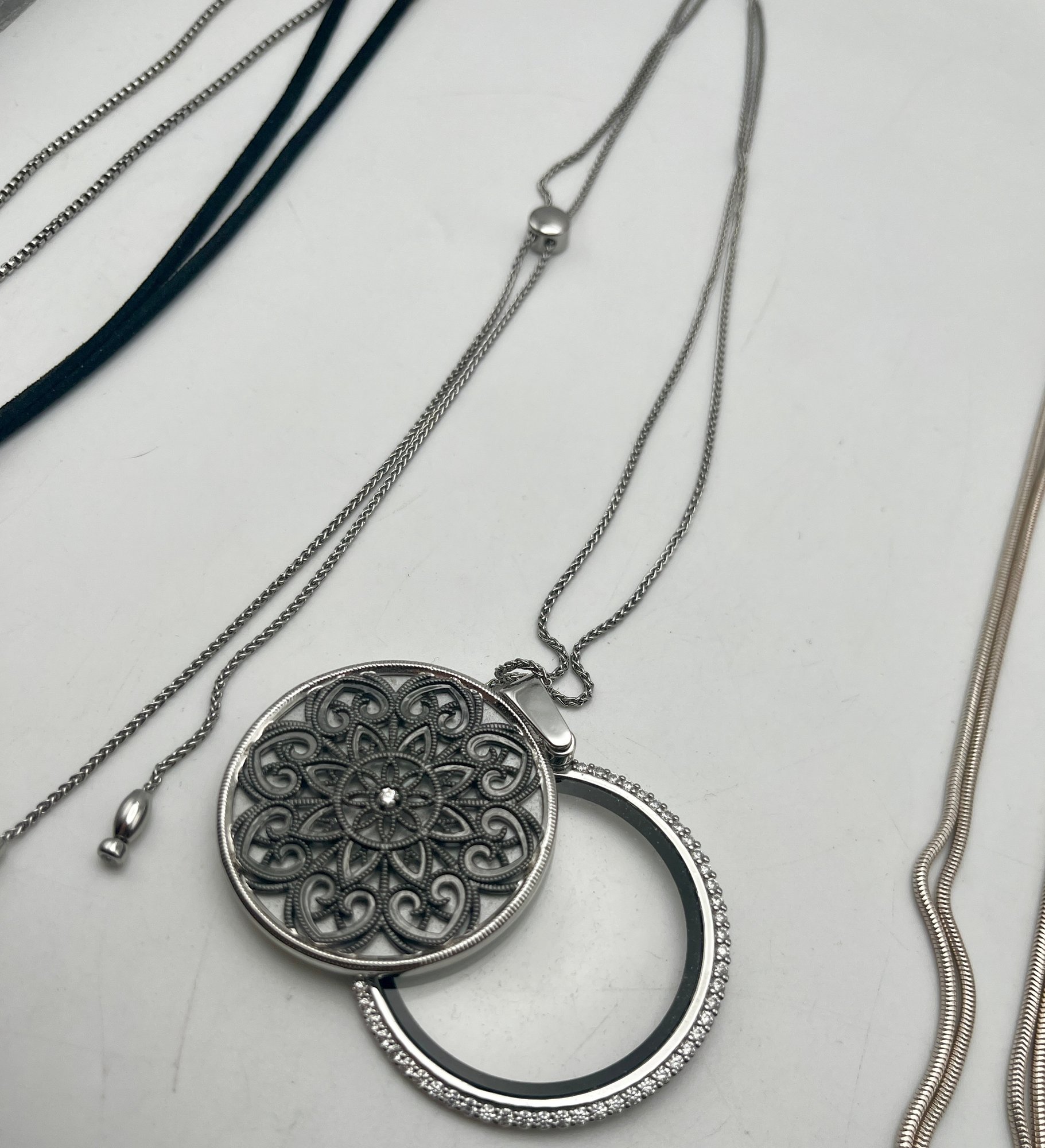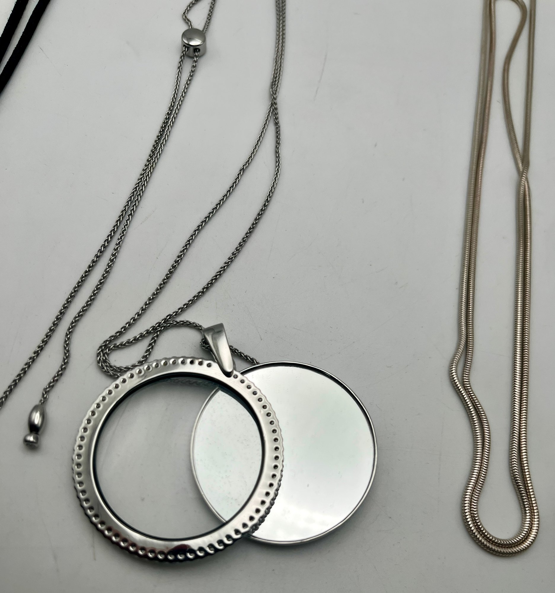 Silver Tone Necklaces - Blue Stone-Magnifier/Mirror