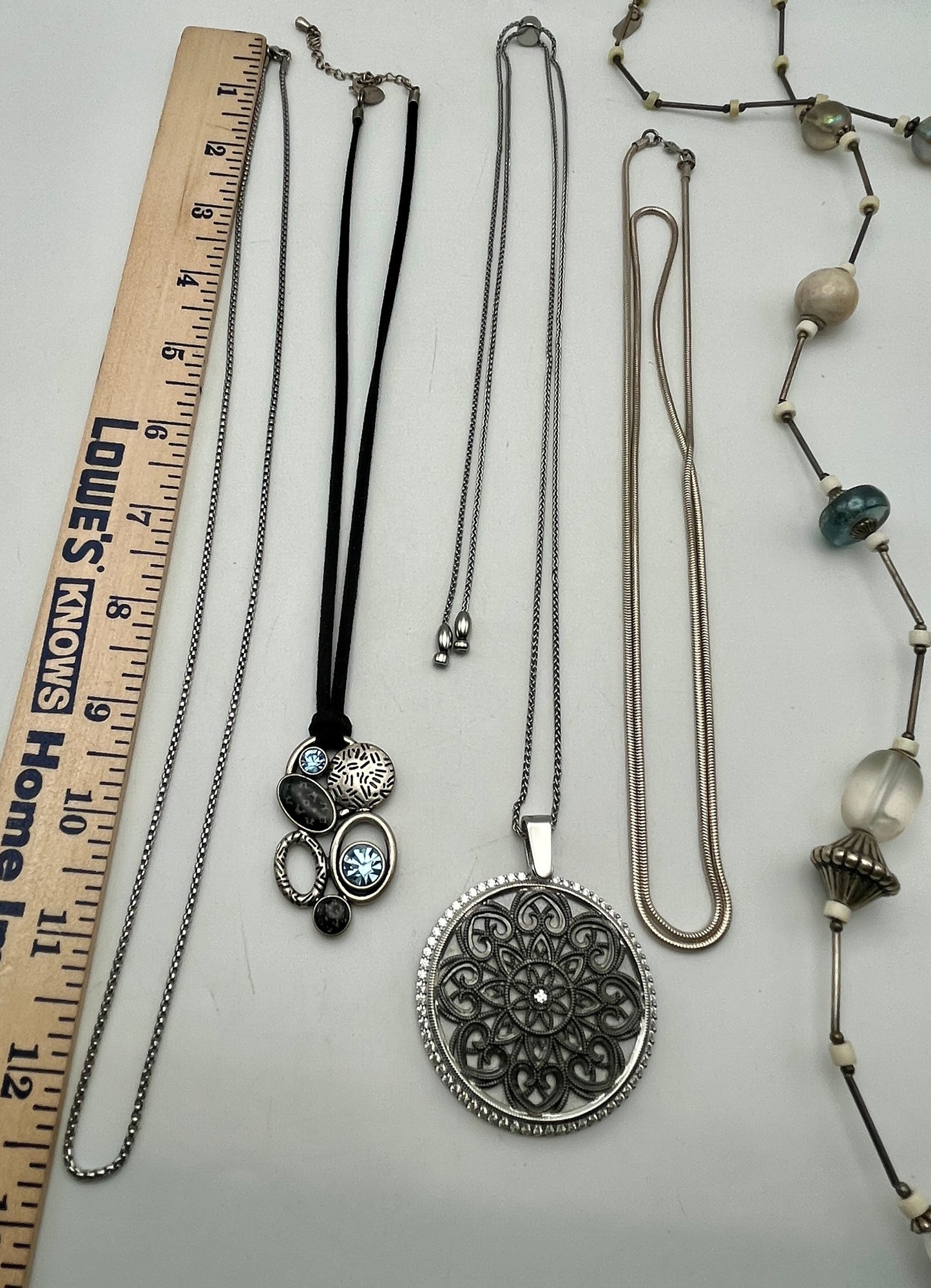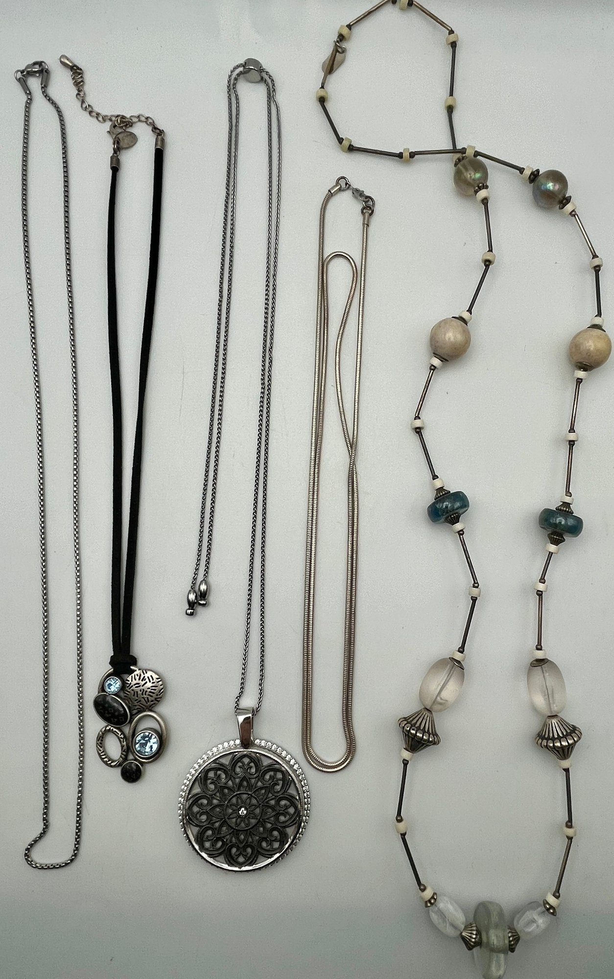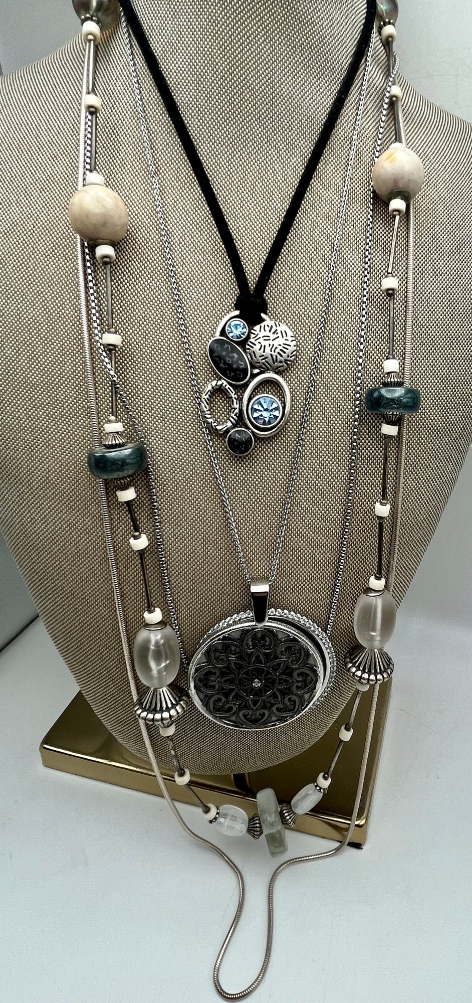 Silver Tone Necklaces - Blue Stone-Magnifier/Mirror