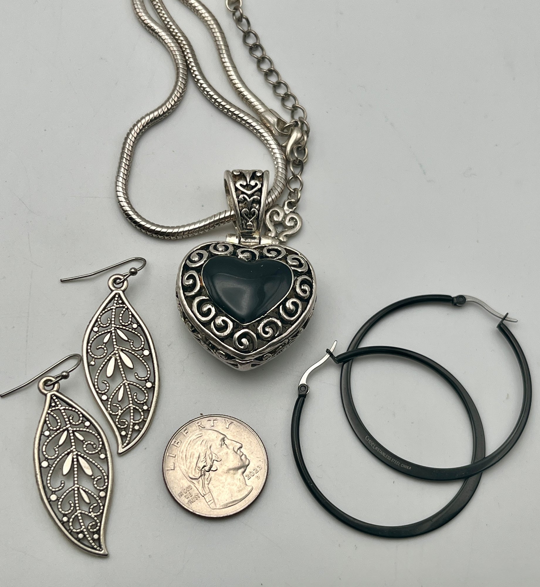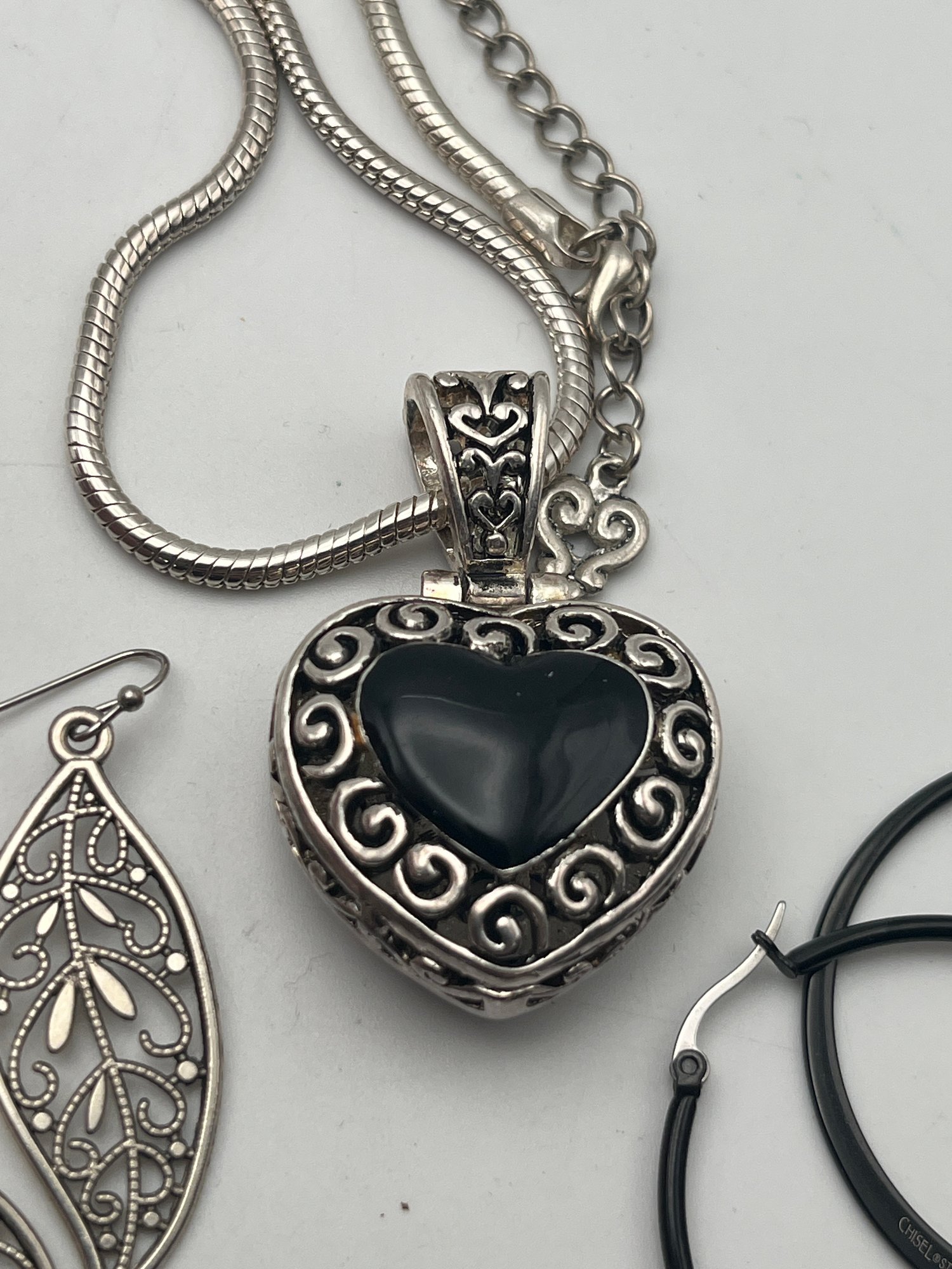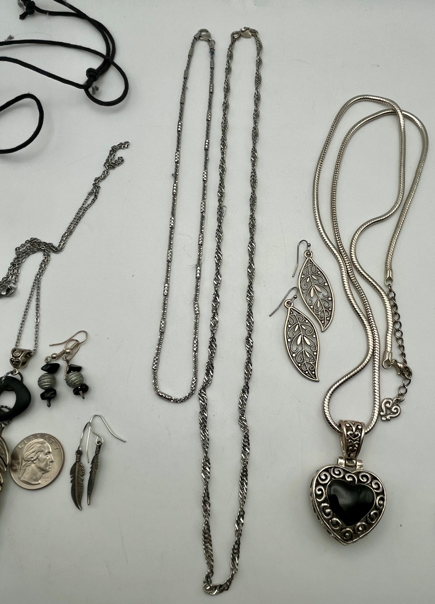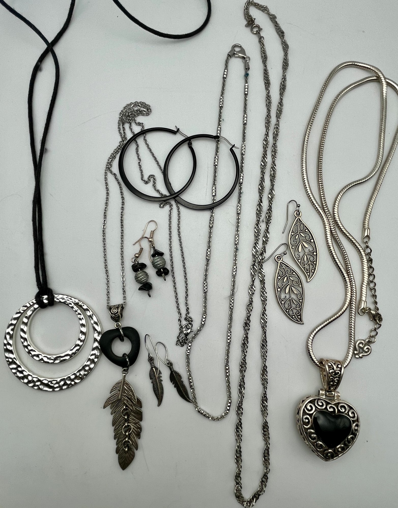 Silver Tone Necklaces & Earrings As shown 4 pair of earrings, necklaces & 2 chains