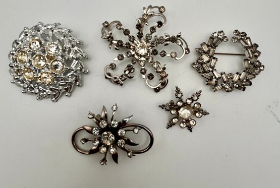 Silver Tone Rhinestone Pin Lot of (5) pins