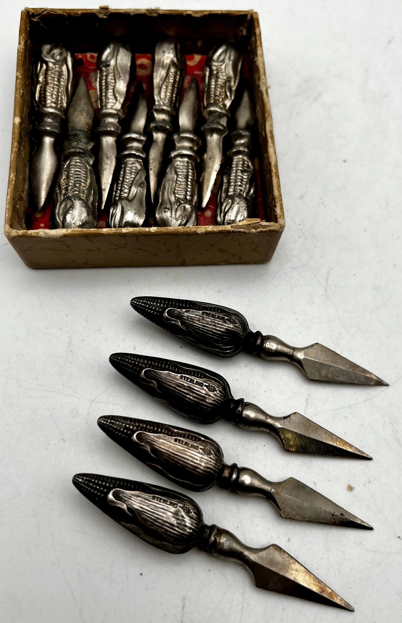 Concession corn cob holders 4 Sterling & Other in marked corn- Corn Cob Holders