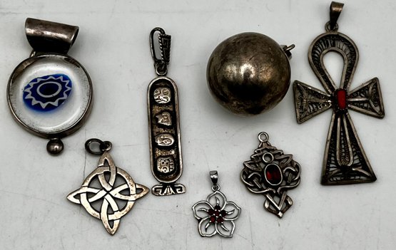 Sterling Pendants & 2 Unmarked the cross and the chime ball