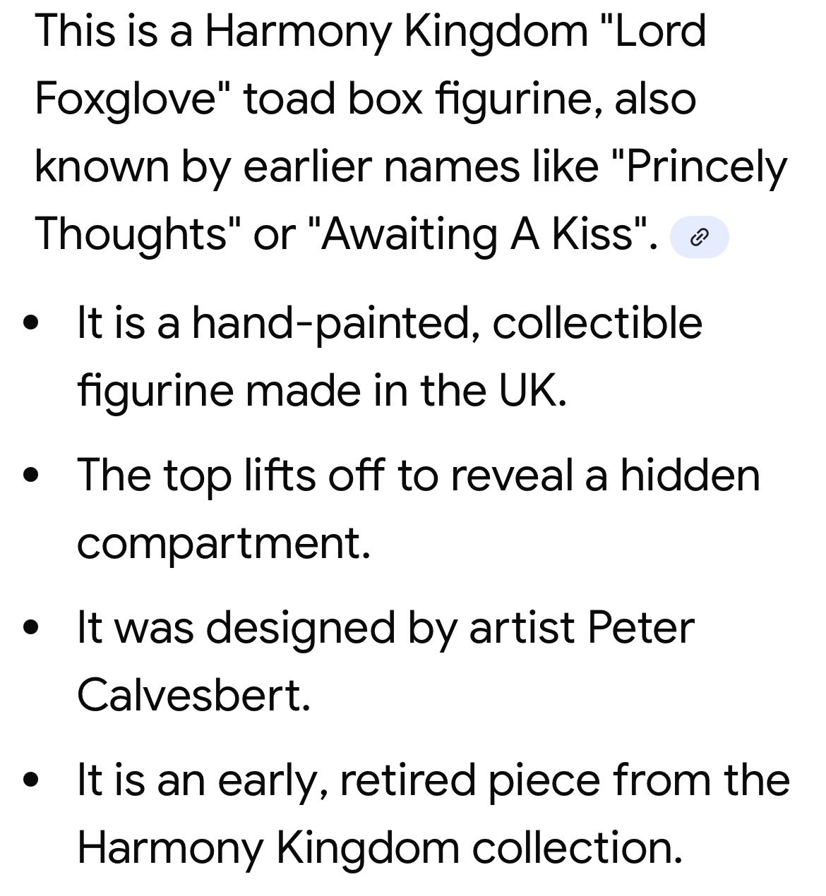 Toad -Signed - Lord Foxglove - Harmony Kingdom