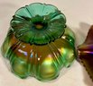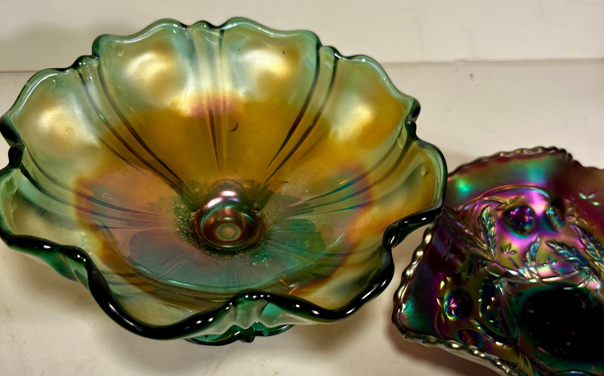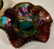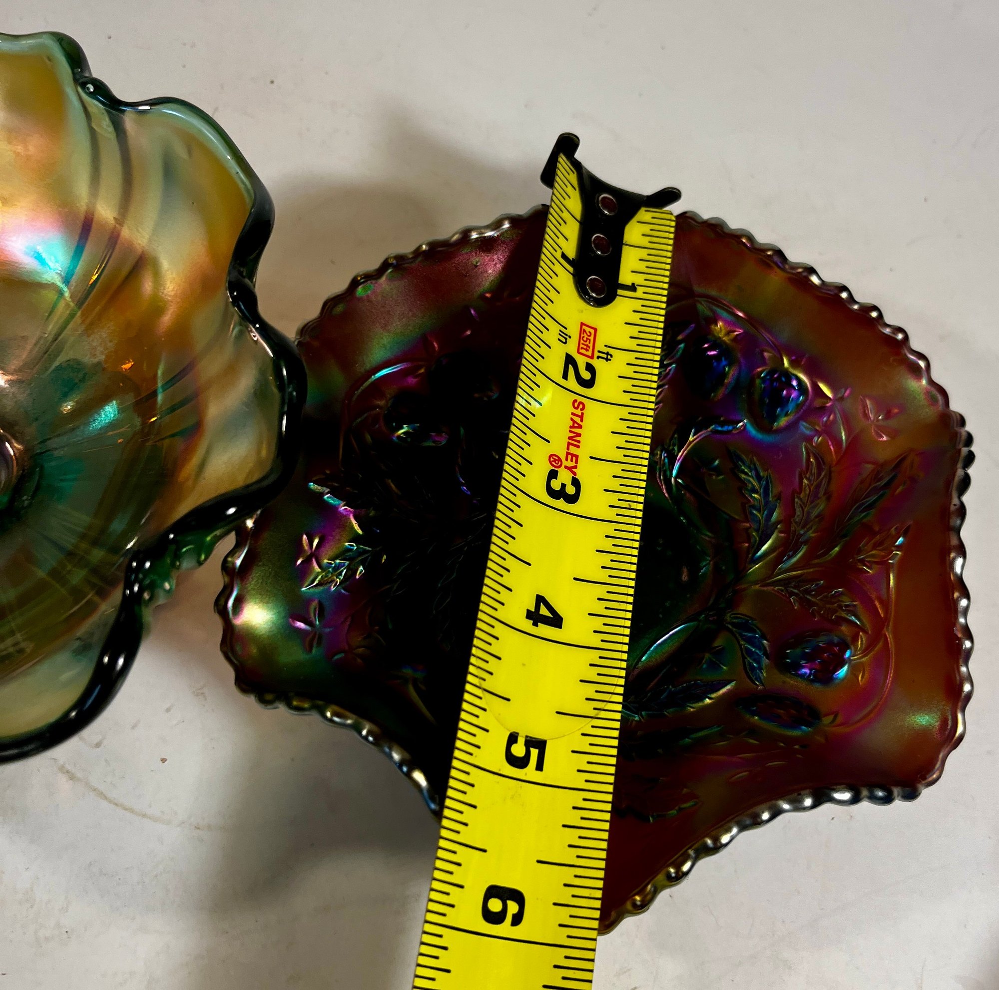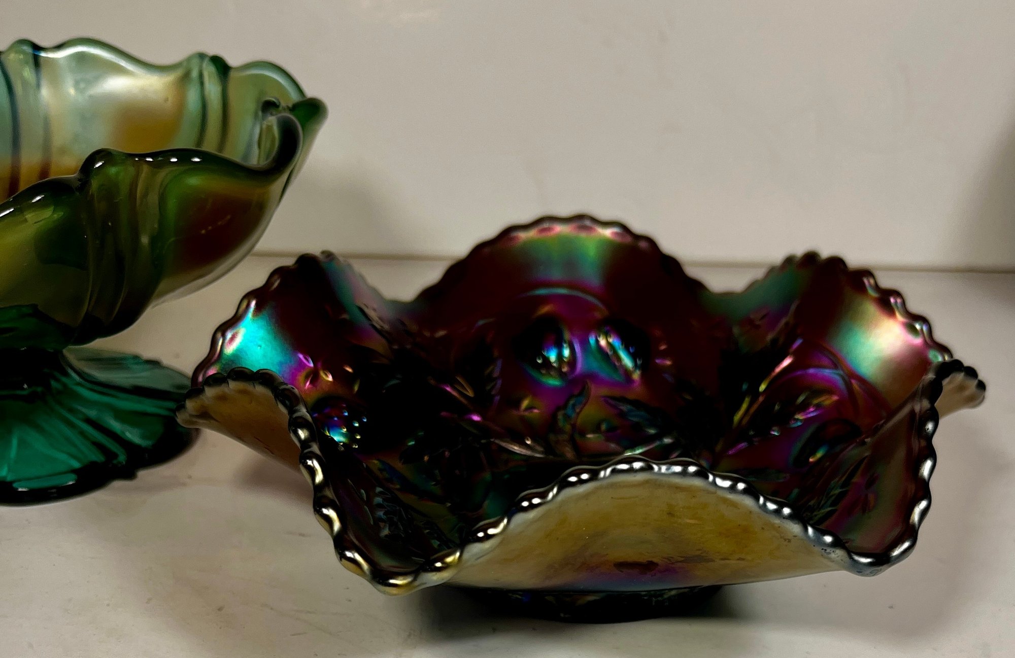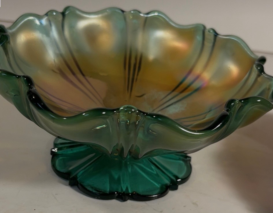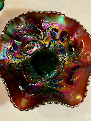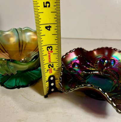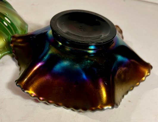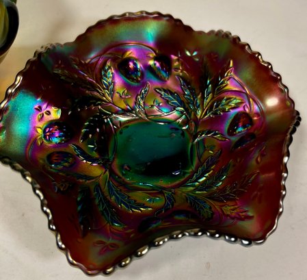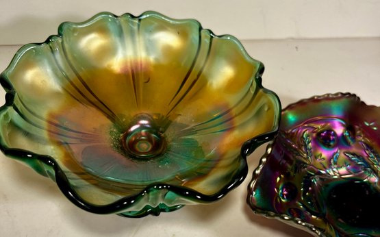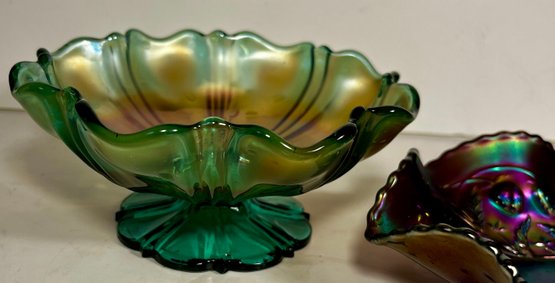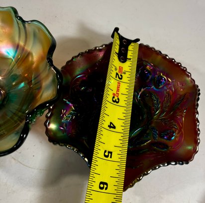 Two Carnival Glass - Northwood Glass Bowl Wild Strawberries And carnival glass compote