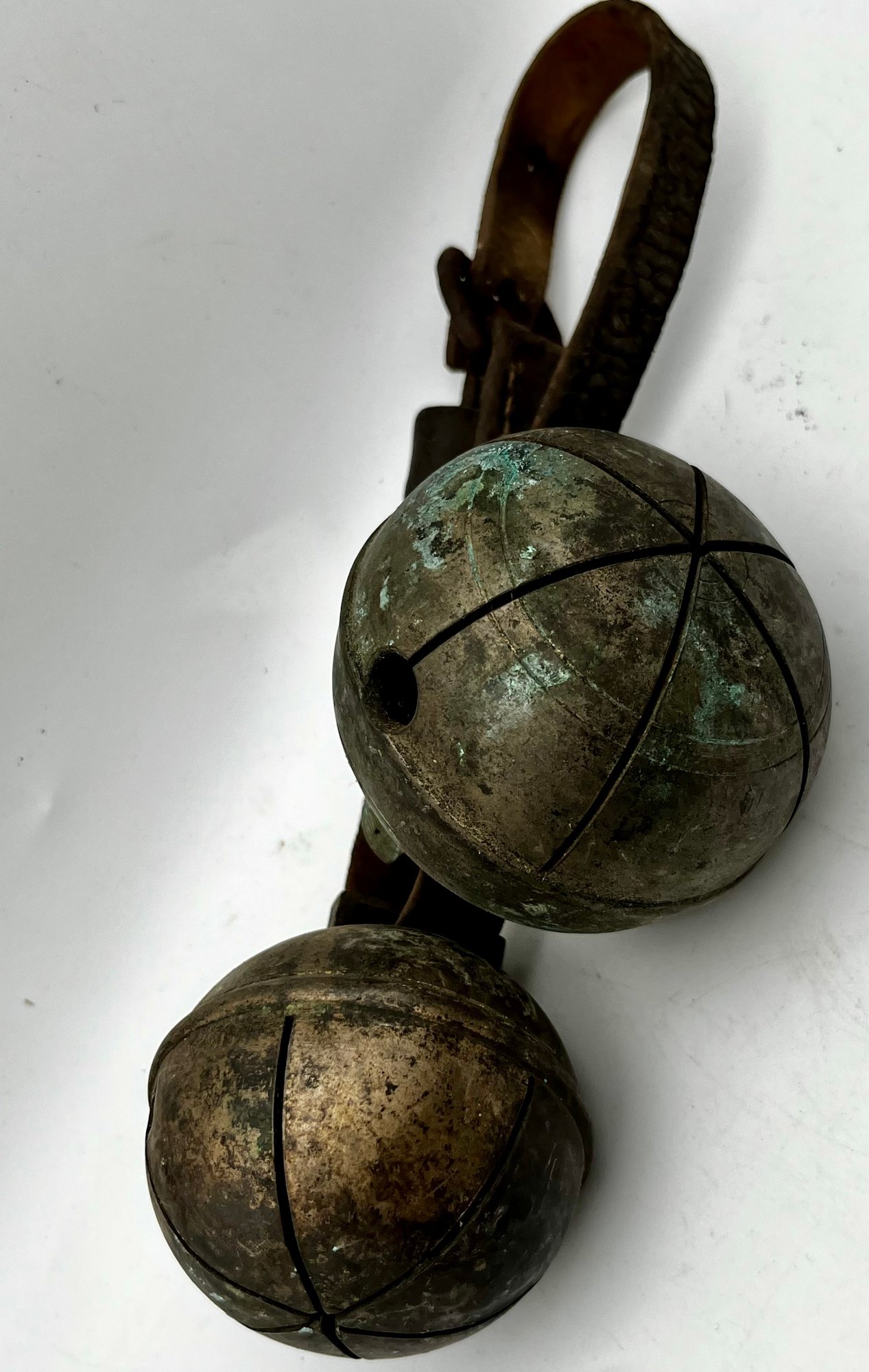 Two Extra Large Sleigh Bells On Leather Strap