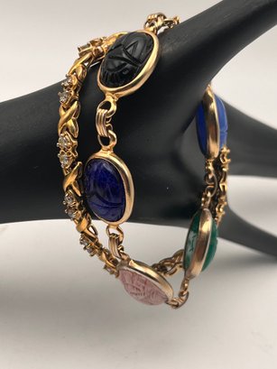 Two Gold Tone Bracelets One Marked 925 CZ The other is Egyptian scarab style