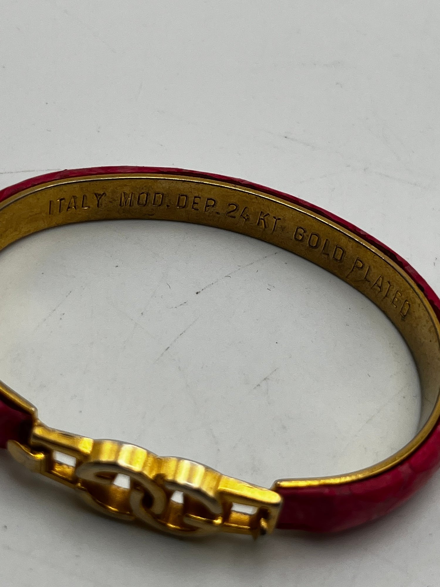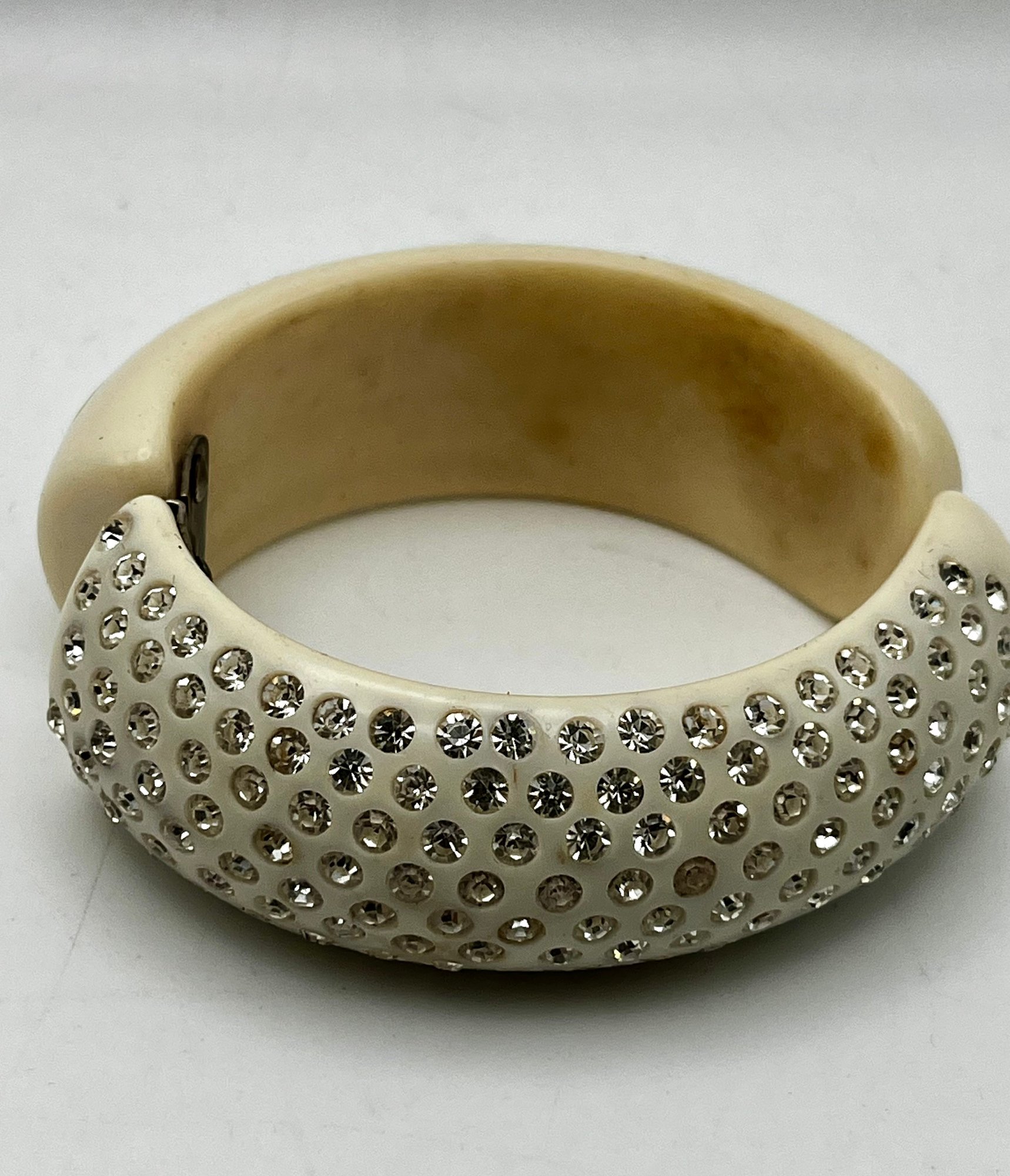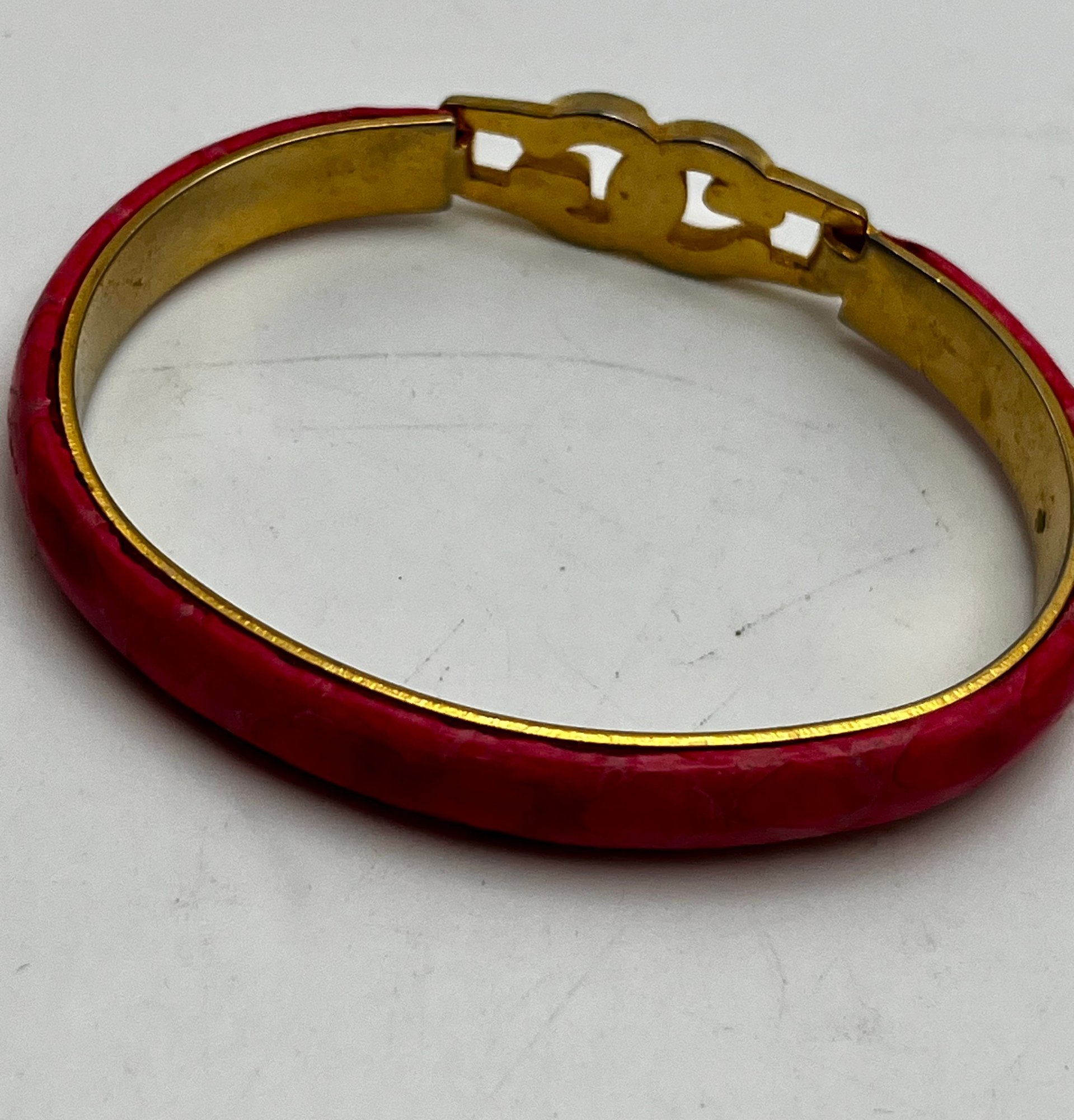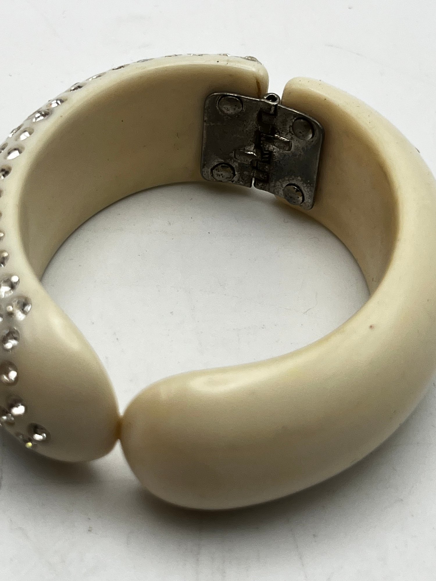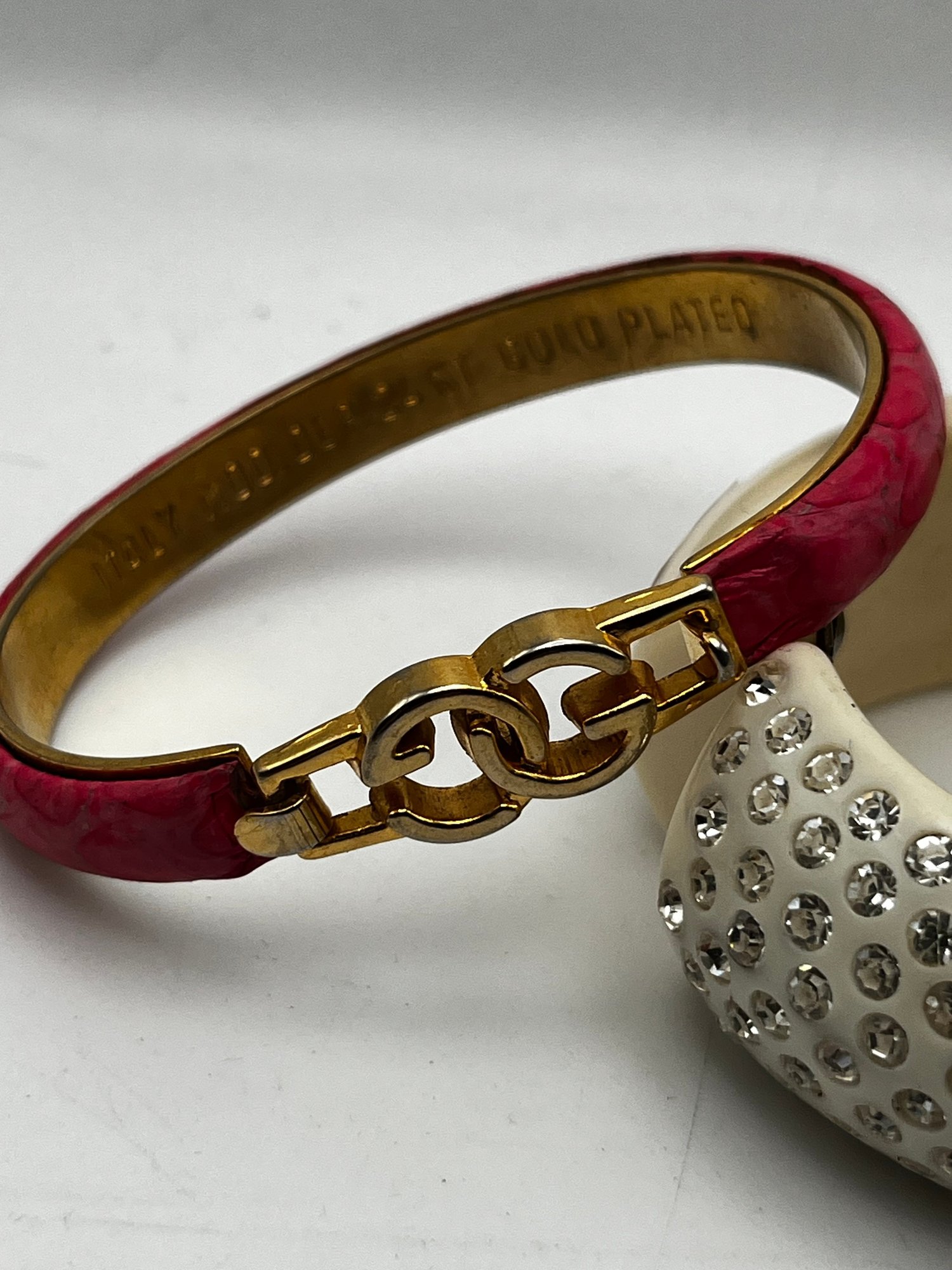 Gucci Vintage 24kt Gold Plate Bangle & white hinged Clamper With Rhinestones
