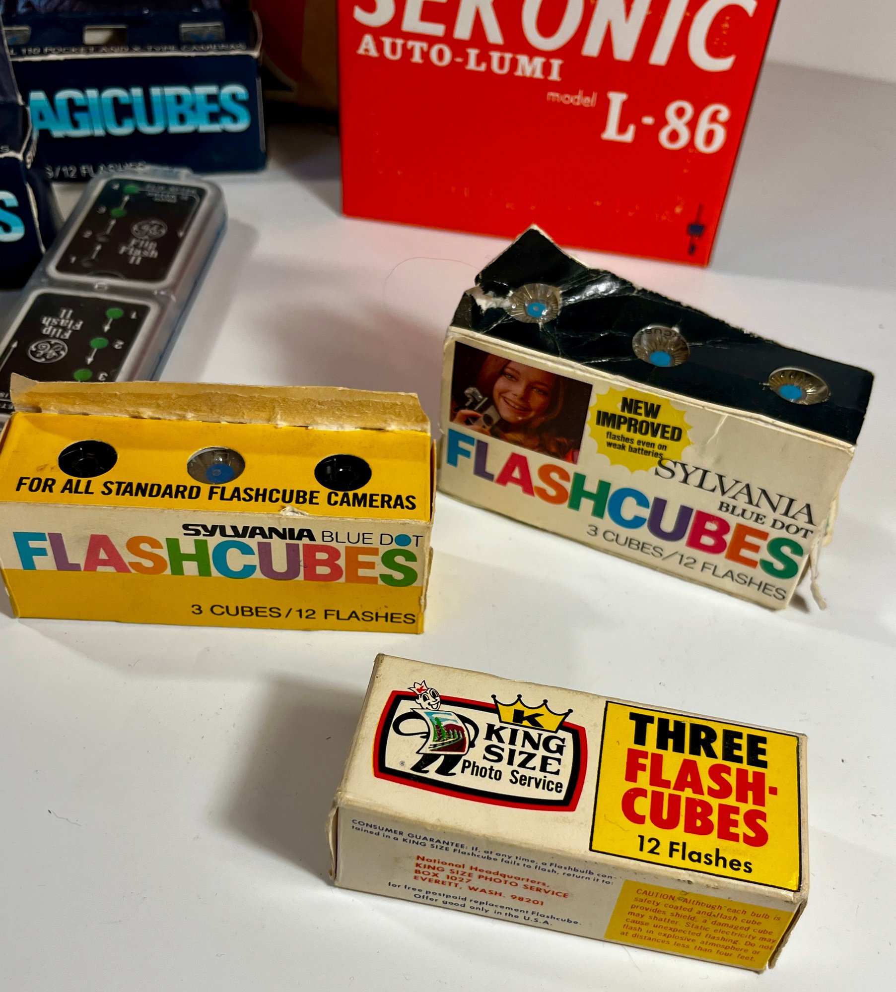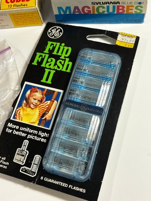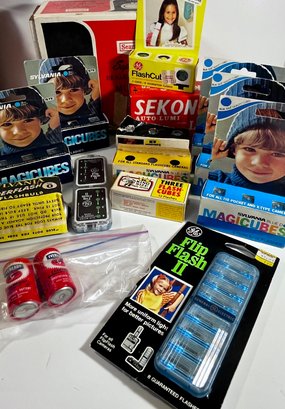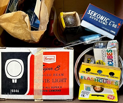 Vintage Camera Flash Bulbs, MAgic Cubes, Movie Light And Guage