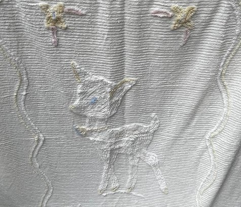 Vintage Chenille Toddler Size Bedspread Fawn Baby Deer 66”x 40”