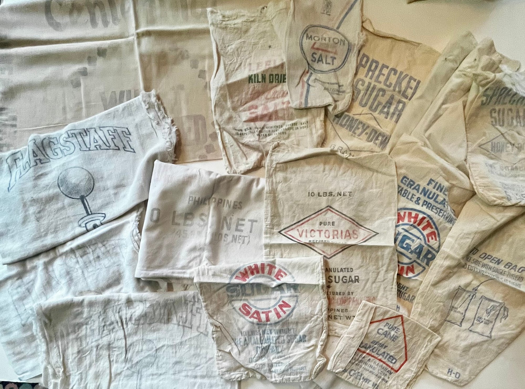 Vintage Sugar, Salt, Flagstaff Sacks/bags some