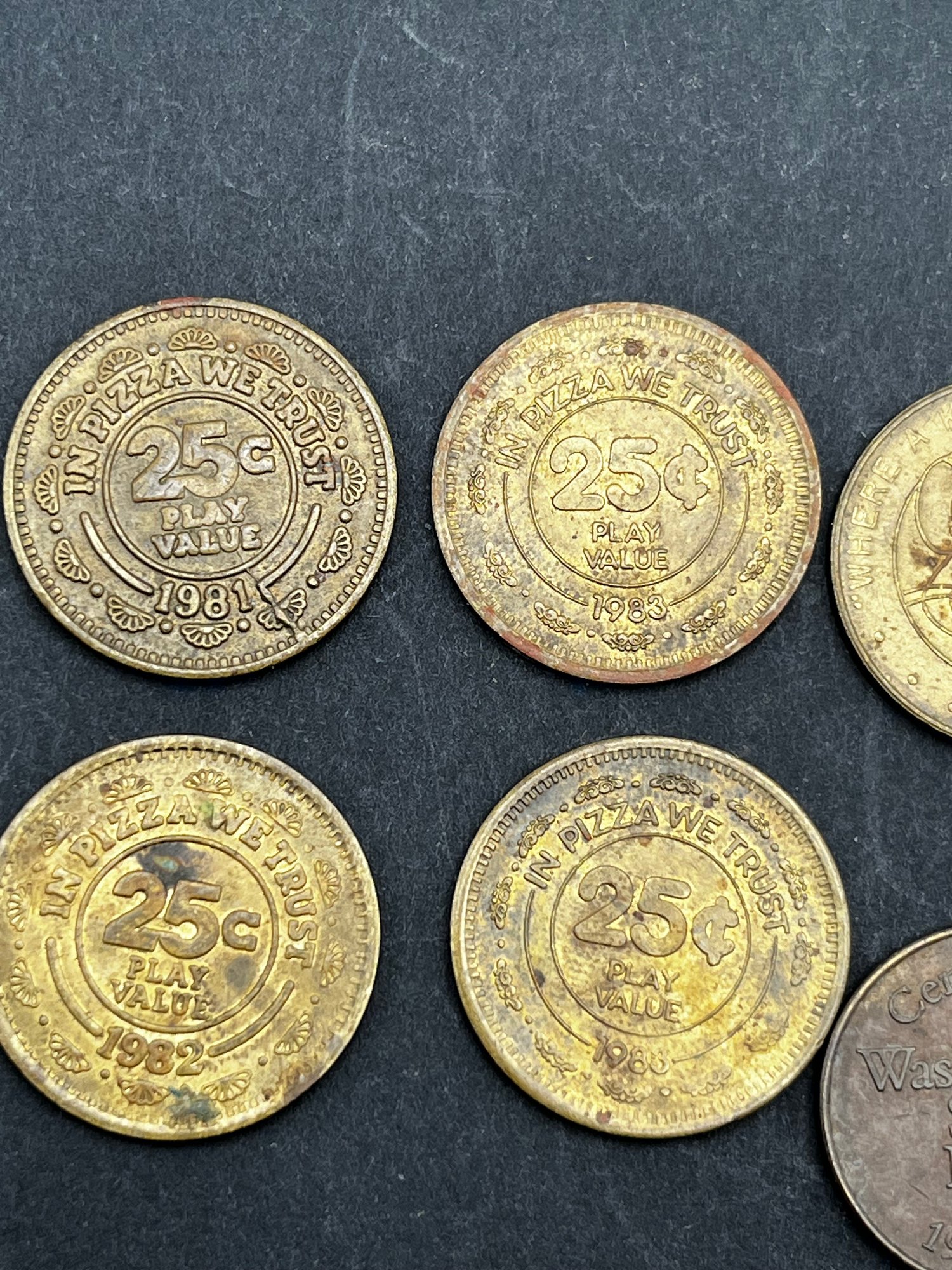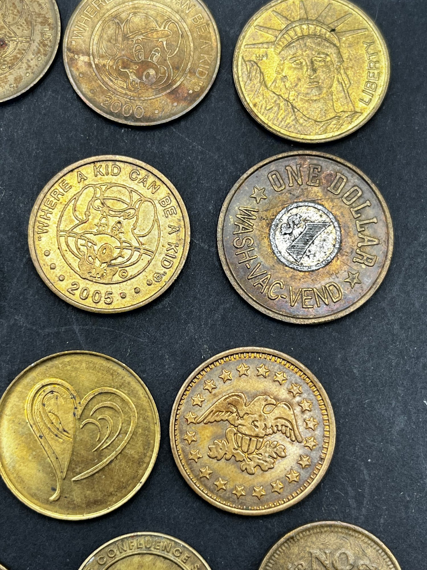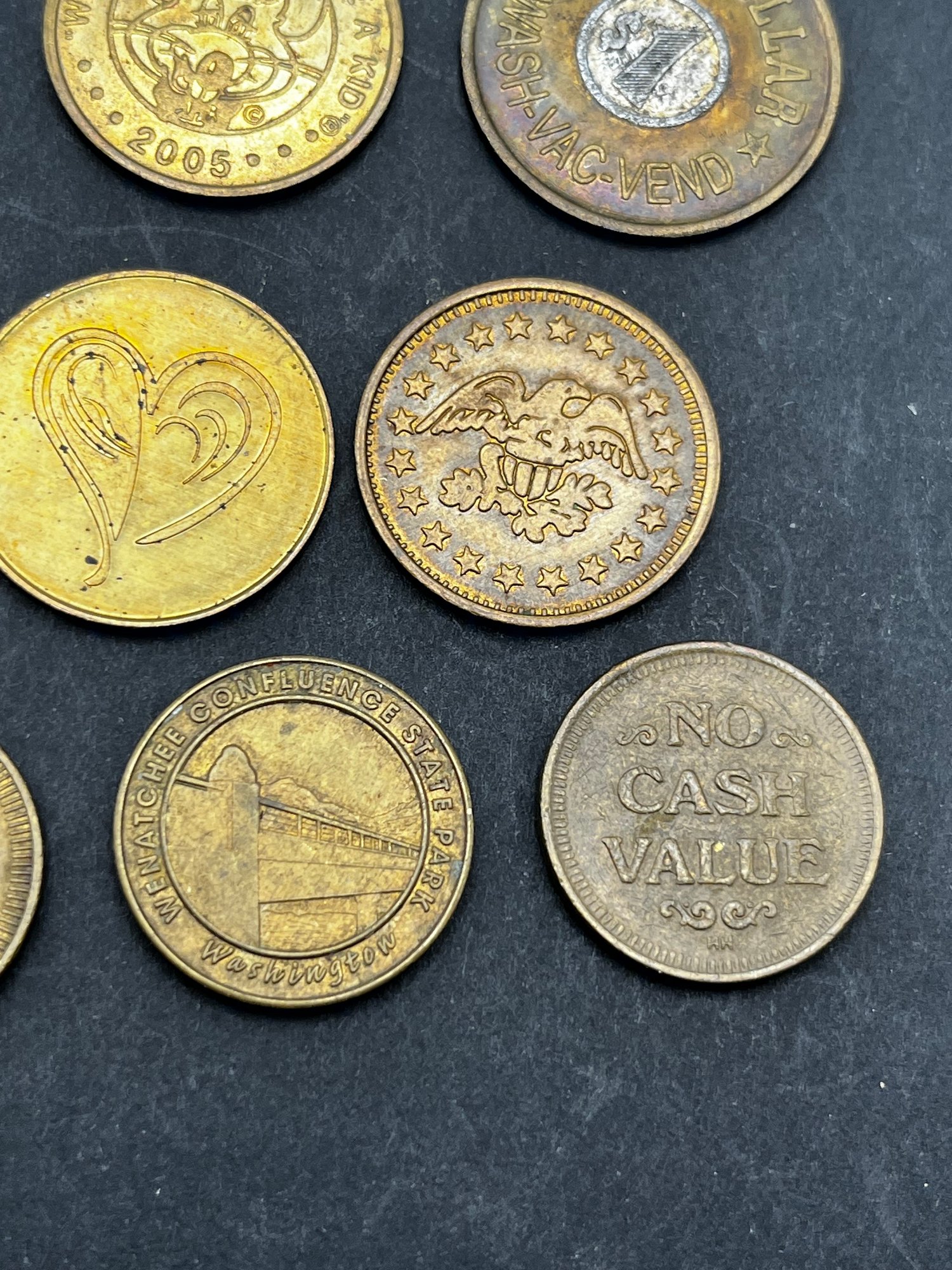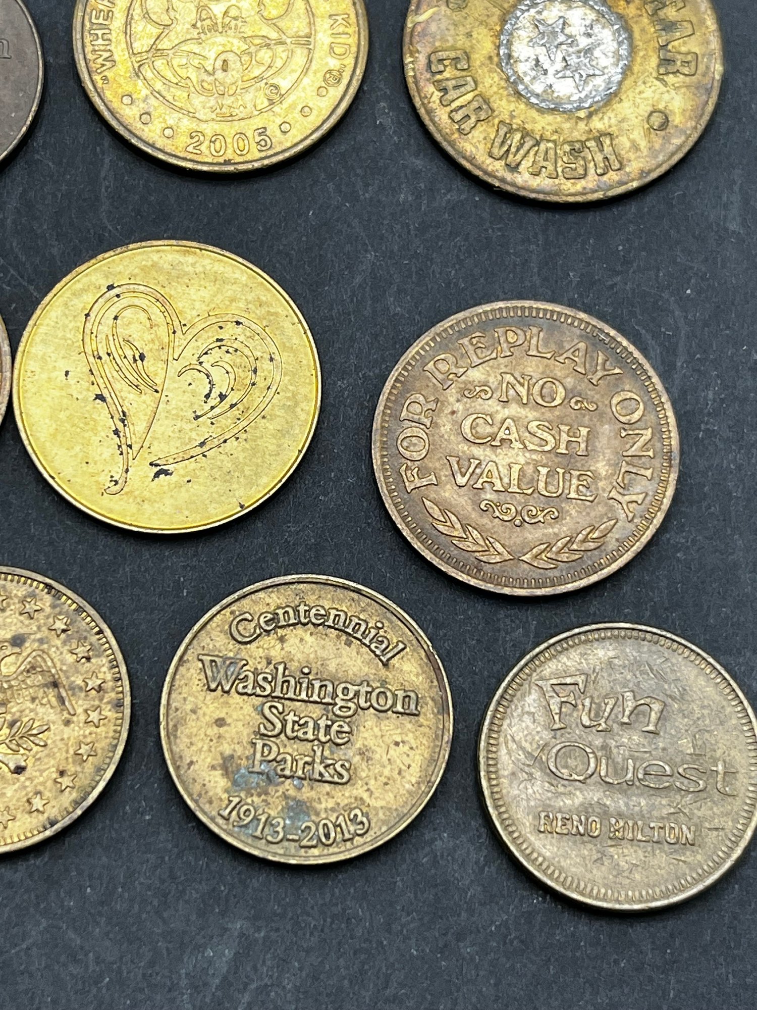 Vintage Tokens Lot of 20. Chuck E Cheese 1981, 82, 83, 93, 2000, Washington state parks , easy streets Seattle, S&S Everett Wa, knotts berry farm