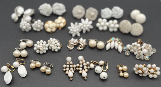 White Pearl , Bead & Other Clip /Screw Earrings Lot 22 pairs