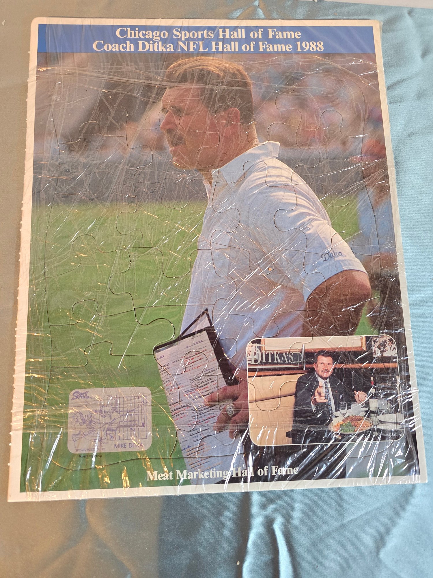 Sealed Coach Mike Ditka 1988 Chicago Hall of Fame PUZZLE DINNER Menu Bears