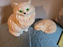 Vntg MCM Persian Large White Ceramic Cat 14” Green Eyes Sitting Statue Figurine