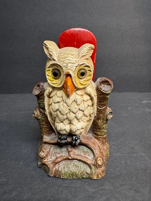 Antique Owl Shoe Brush Holder 6"