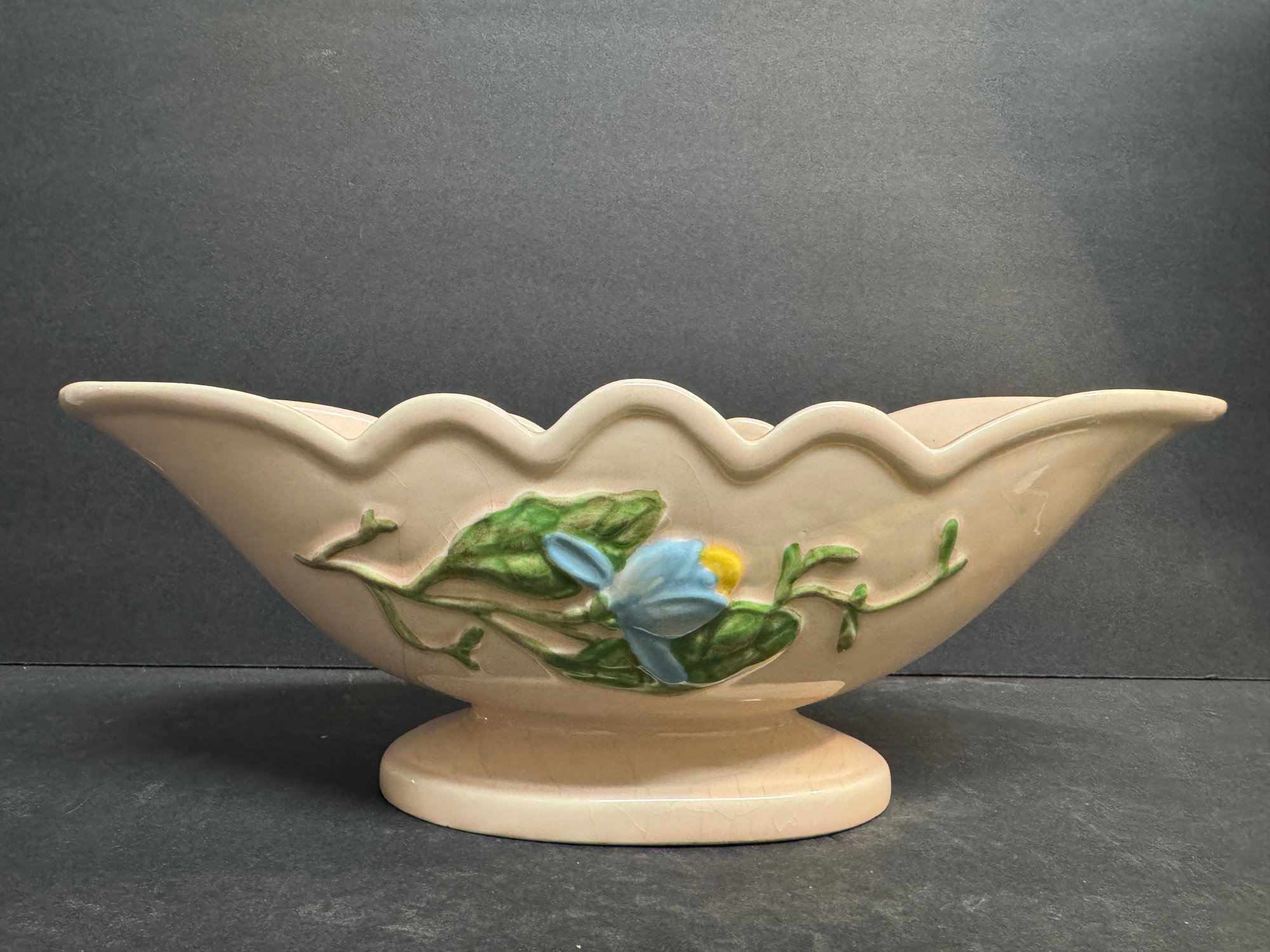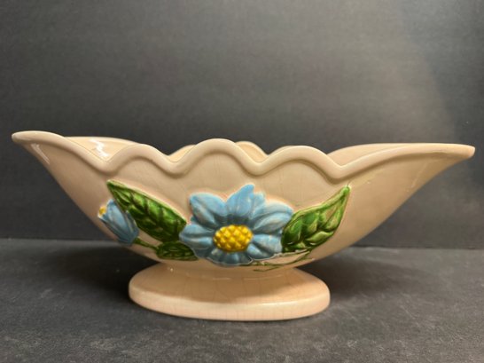 Hull Planter, Light Pink With Blue Flowers 14.5"