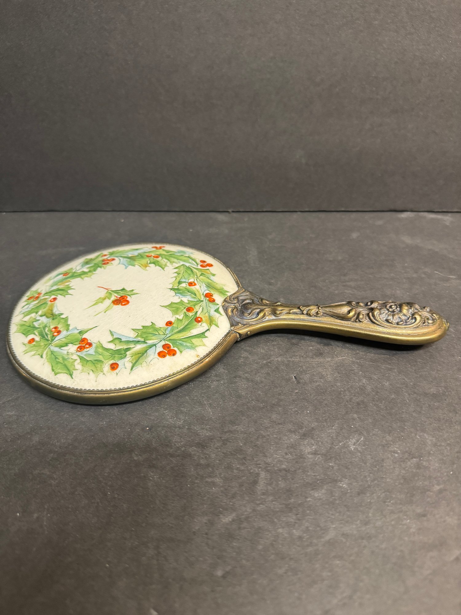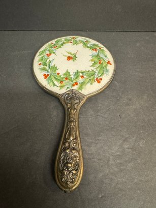 Victorian Hand Mirror - Holly Design 10.5"