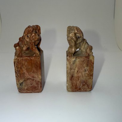 Chinese Carved Soapstone Figurines, Foo Dogs" Or "Fu Dogs"