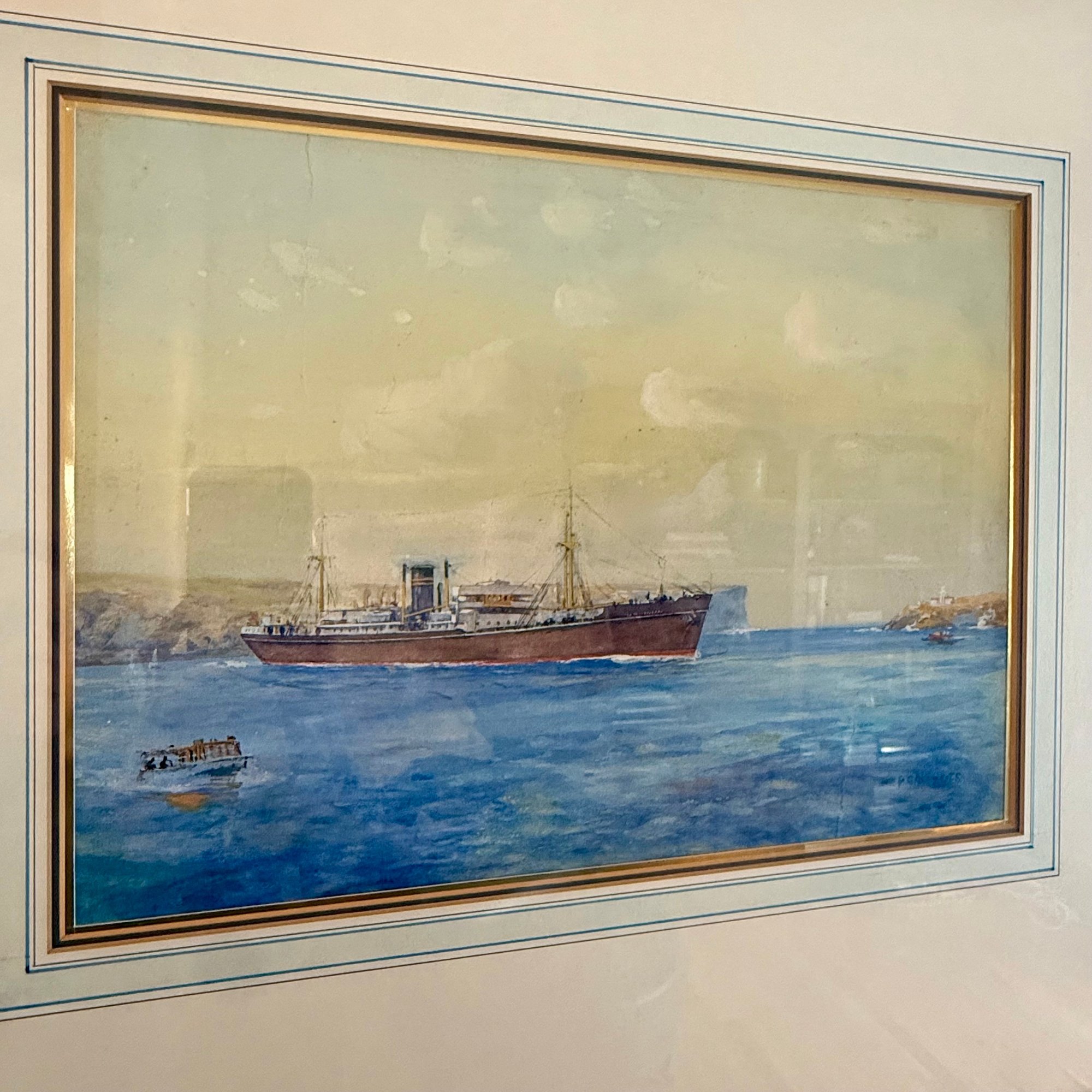 STUDY OF A LARGE STEAM VESSEL Australian river boat), c. 1915/ Probably J. Allcot (signature under the mat at the lower right?). 'Signed' by P Grimanes student of Allcot