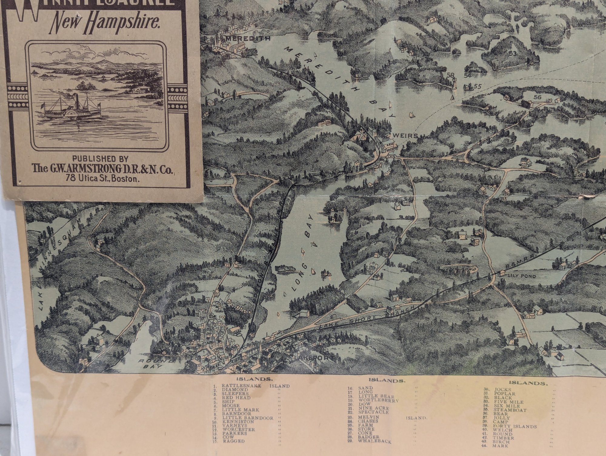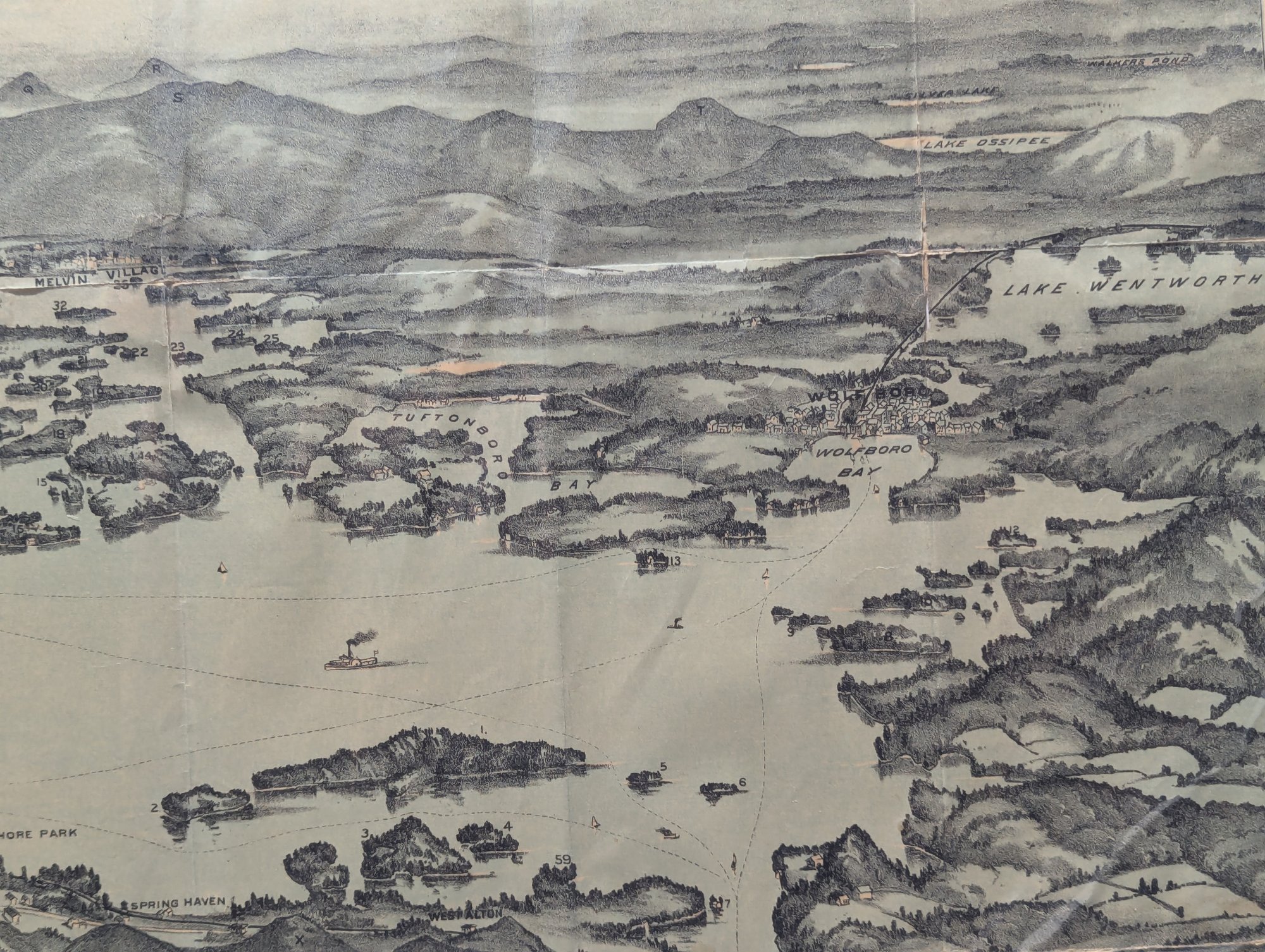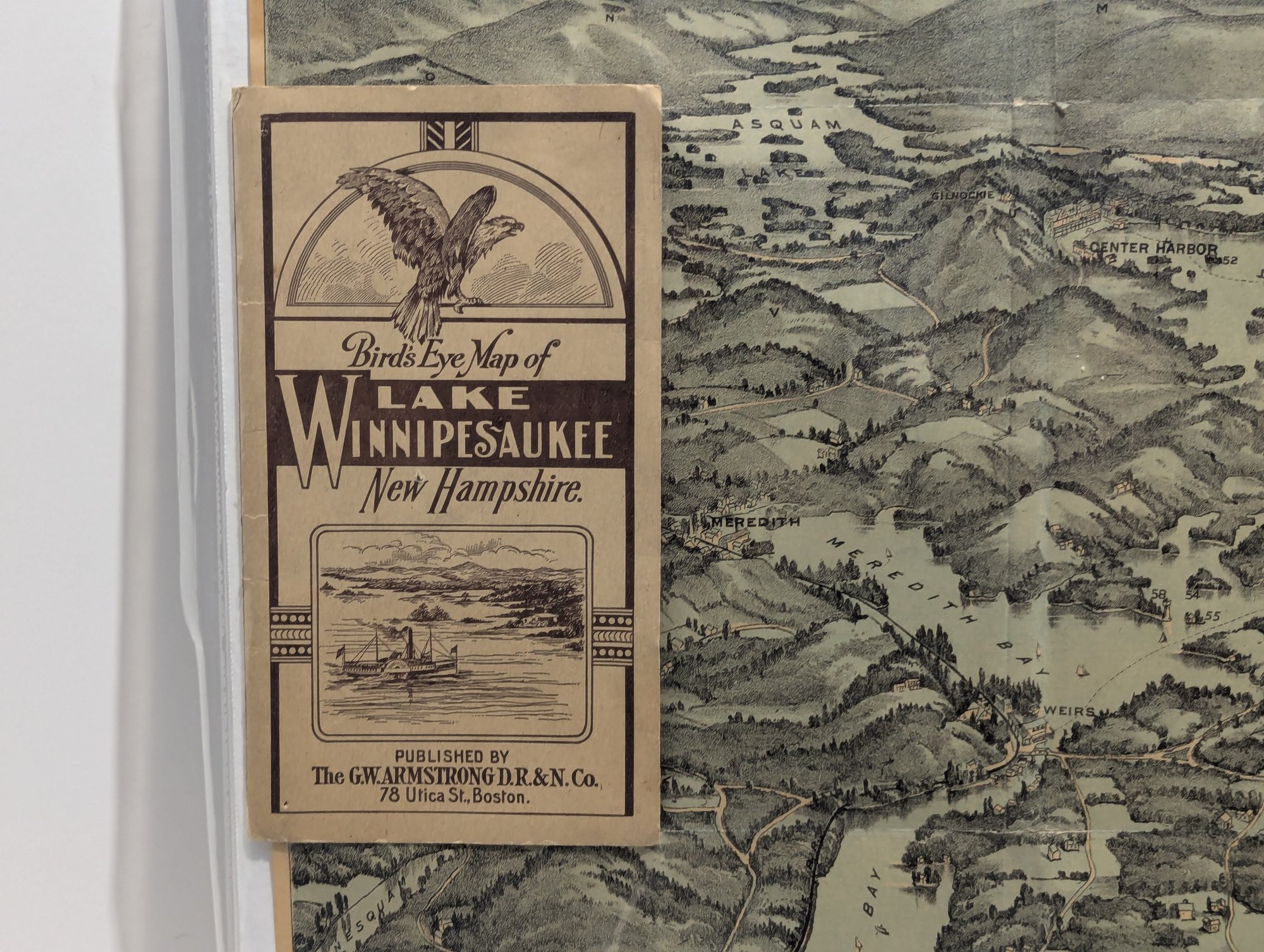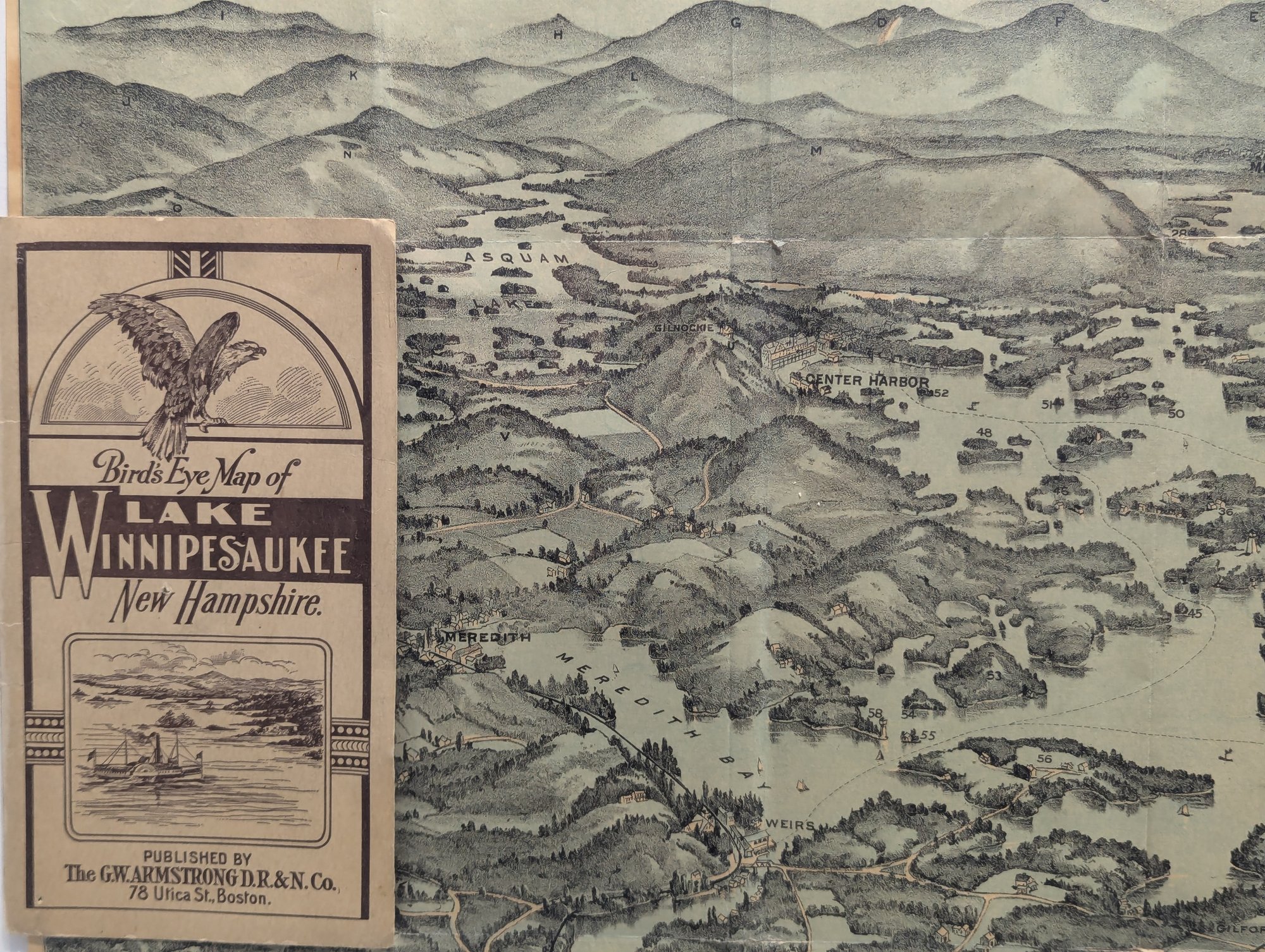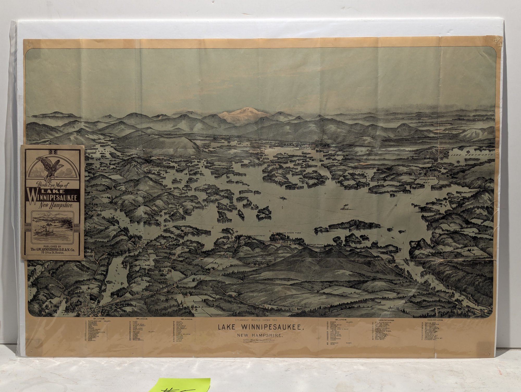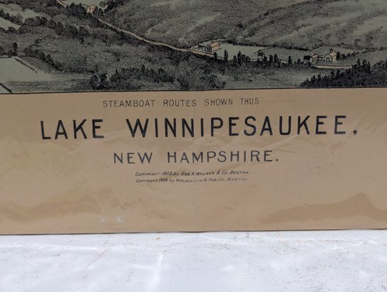 1909 Book / Map Bird's Eye View Lake Winnipesaukee - Steamer Mt. Washington